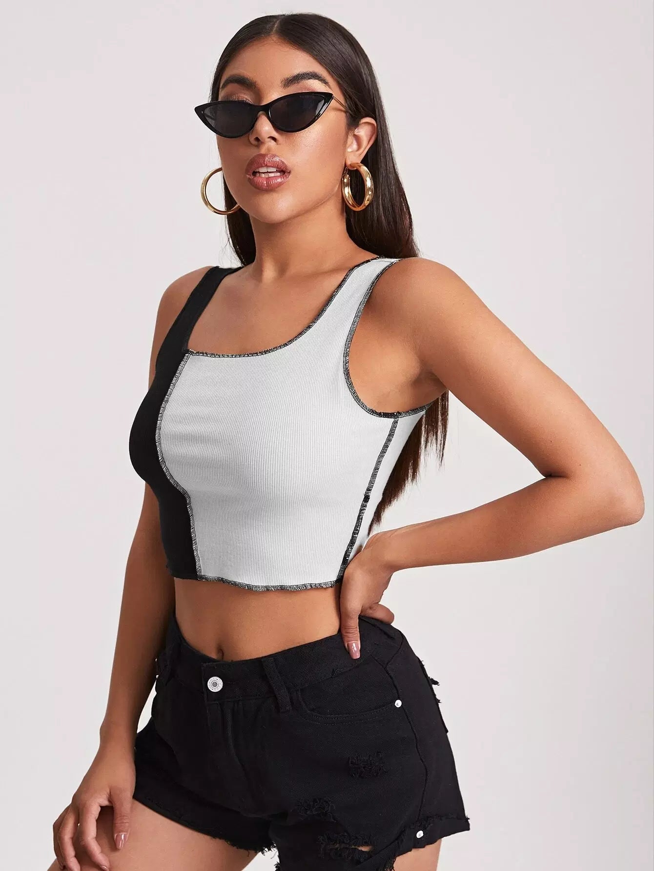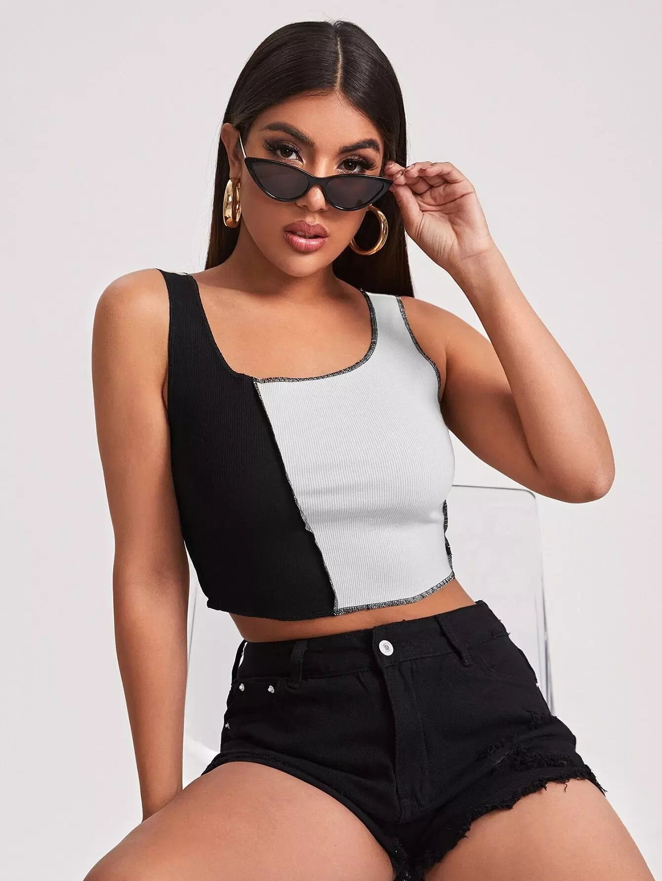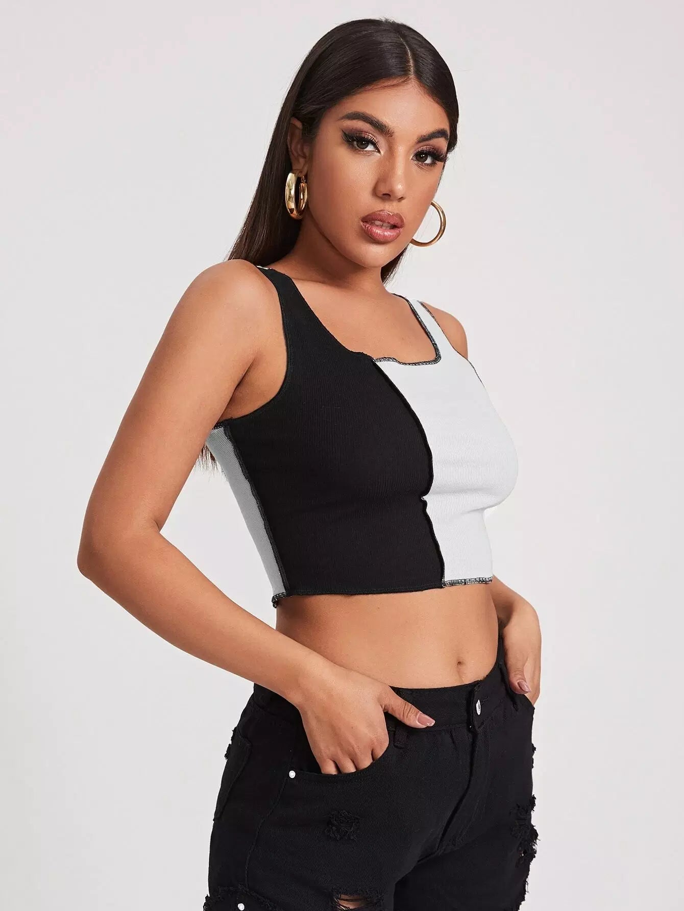 تانك بدون أكمام بحياكة ملونة ومزخرفة بغرزة