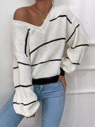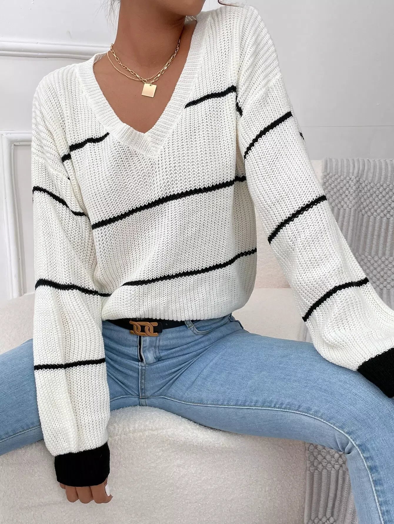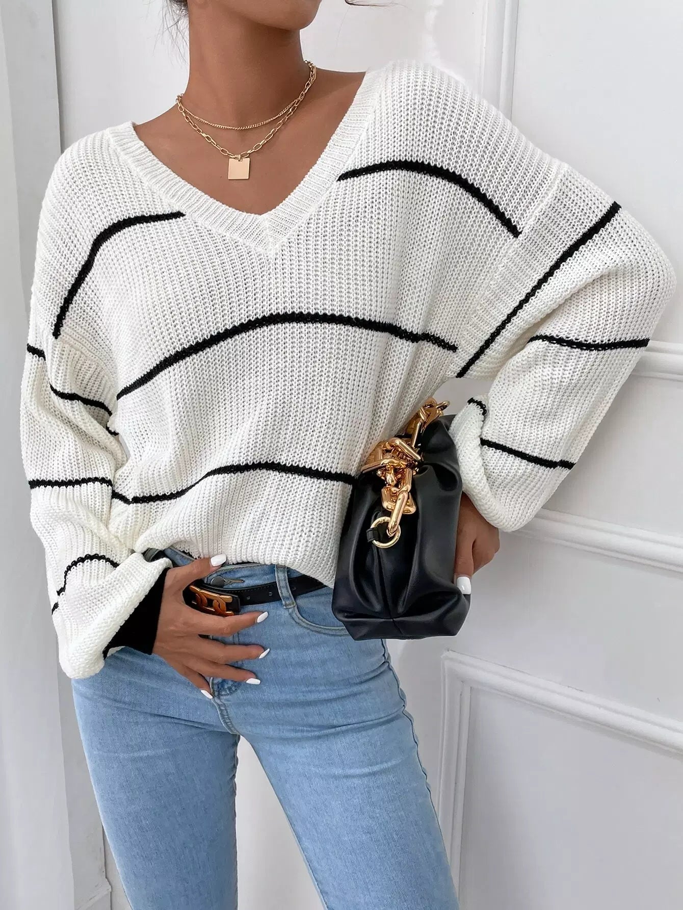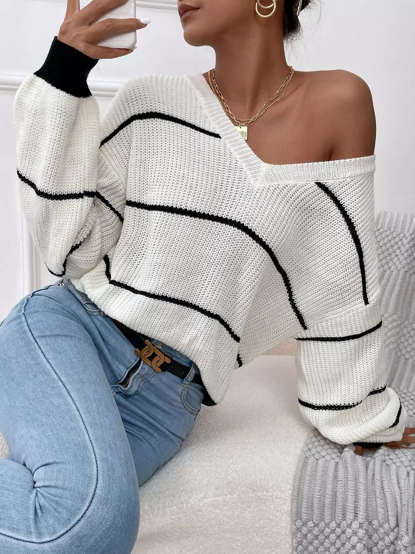 كنزة مخططة منسدلة الكتفين بنقشة مخططة