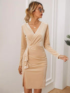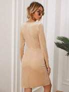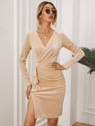 فستان برقبة كشكش بفتحة مخملية منسدلة برقبة كشكش