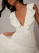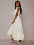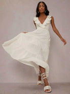 للنساء - فستان سادة ذو رقبة مكشكشة ومكشكش