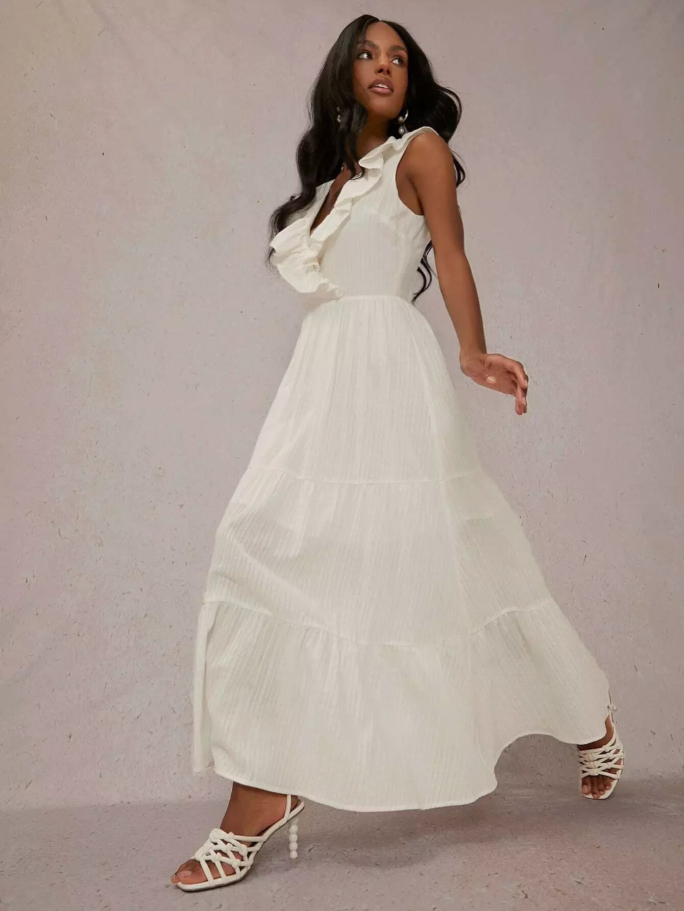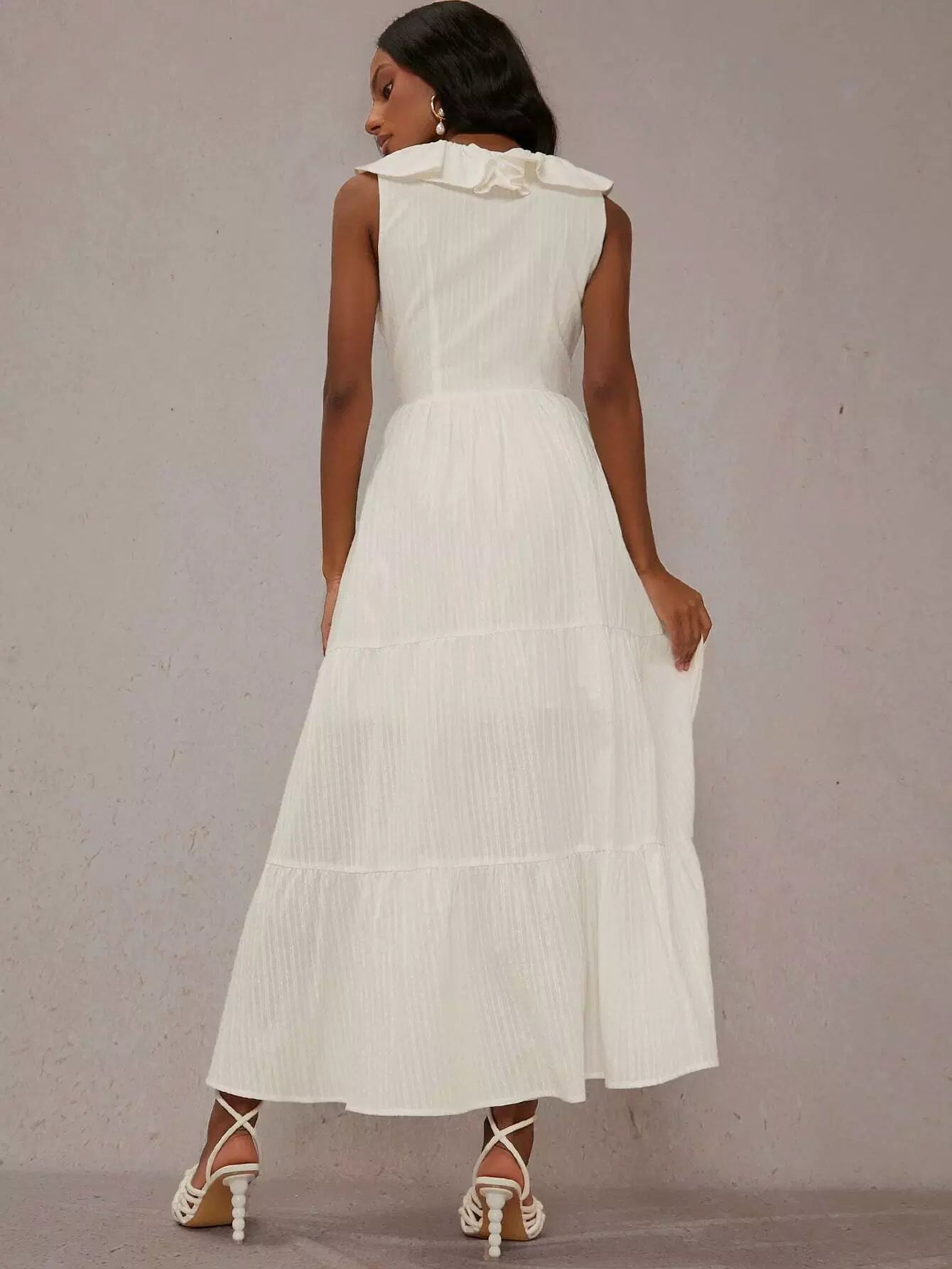فستان برقبة كشكش بياقة مكشكشة سادة