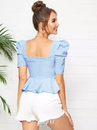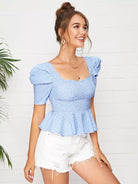 توب بياقة منفوشة بأكمام منفوشة بياقة منفوشة برقبة منفوشة بفتحة منفوشة