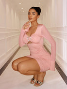 SXY Prom Dress;Women's Elegant Sexy Rhinestone Decor Hollow Out Ruched Bodycon Mini Dress
