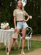 بلوزة سادة برقبة سادة بربطة عنق برقبة من الخلف