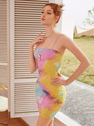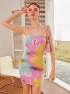 فستان بوديكون بتفاصيل مرقعة على شكل فراشة مصبوغ بربطة عنق