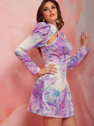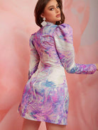 فستان قصير بياقة قصيرة، بياقة ماندارين بربطة عنق مصبوغة بربطة عنق