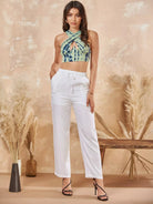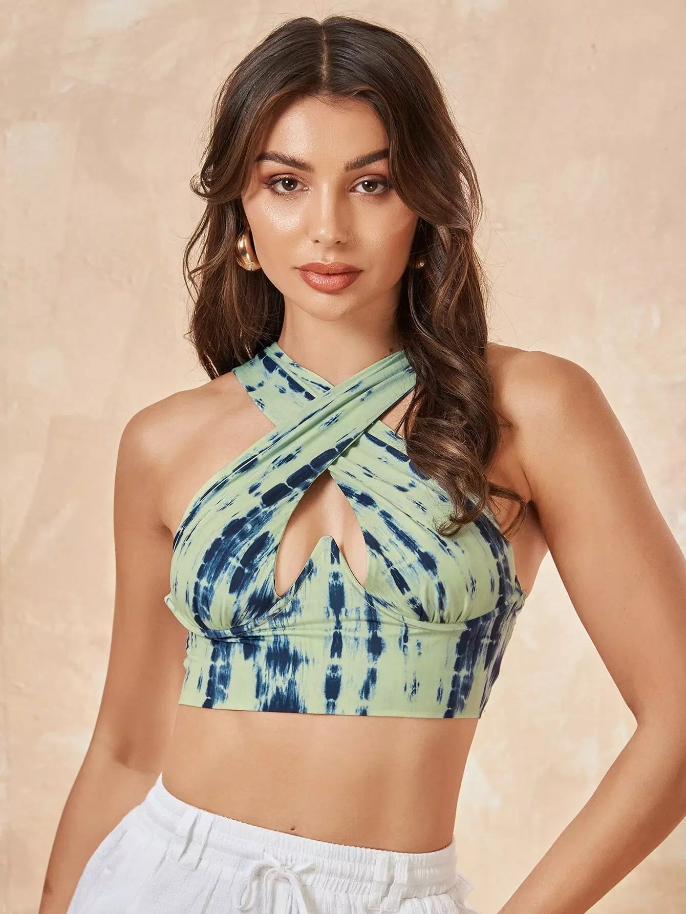 بلوزة قصيرة بفتحة ملفوفة على شكل صليب ملفوفة بربطة عنق ملفوفة على شكل صليب