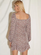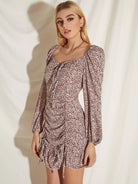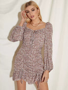 فستان مزين بربطة عنق برباط على شكل عقدة كشكش بحافة كشكش مزين بالورود
