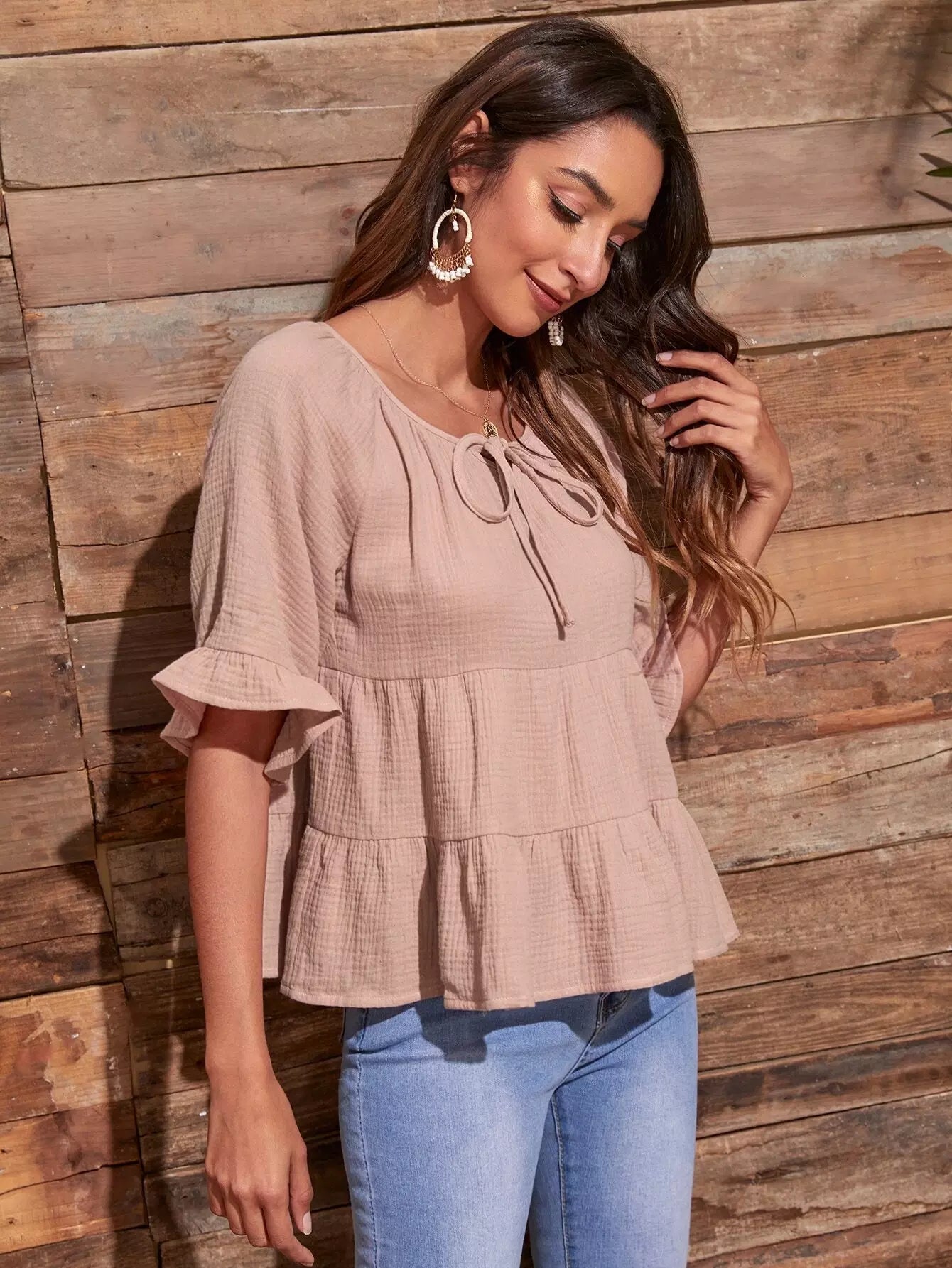 بلوزة بربطة عنق بربطة عنق مكشكشة