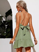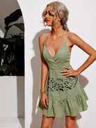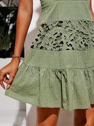 فستان دانتيل مفتوح من الدانتيل المخرّم المربوط من الخلف ومفتوح من الدانتيل المخرّم والمنقّط السويسري