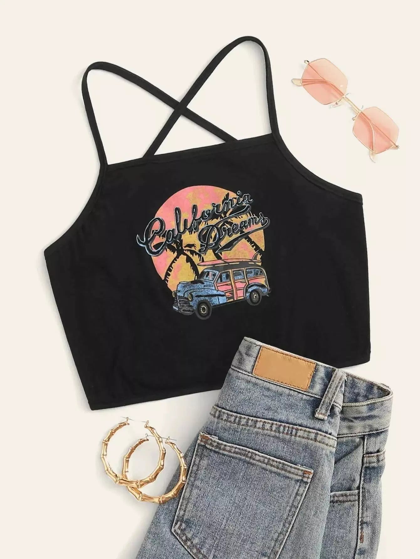 بلوزة كاميه برباط على شكل صليب متقاطع بربطة ظهر من تروبيكال آند كار