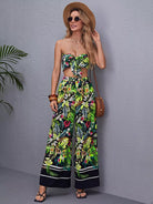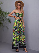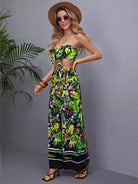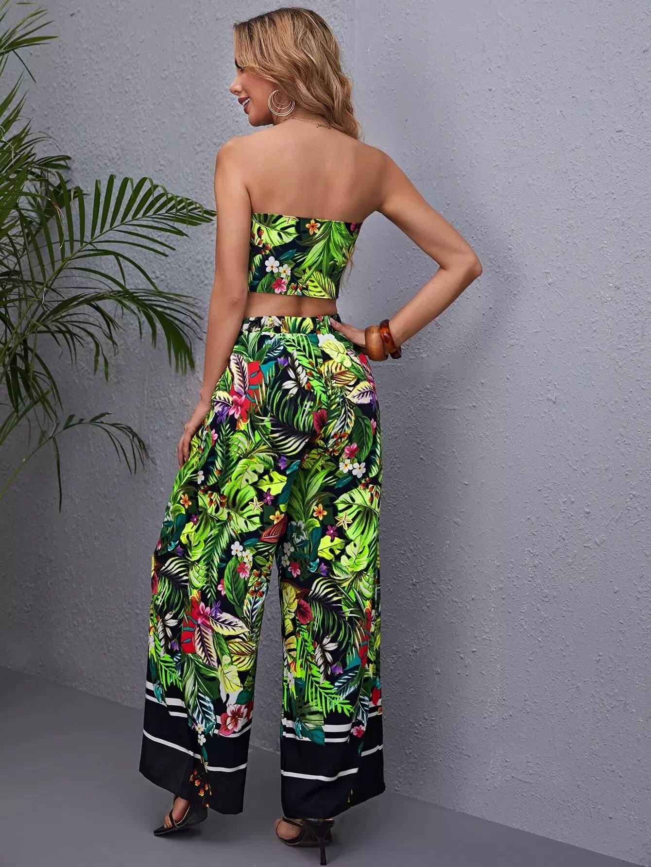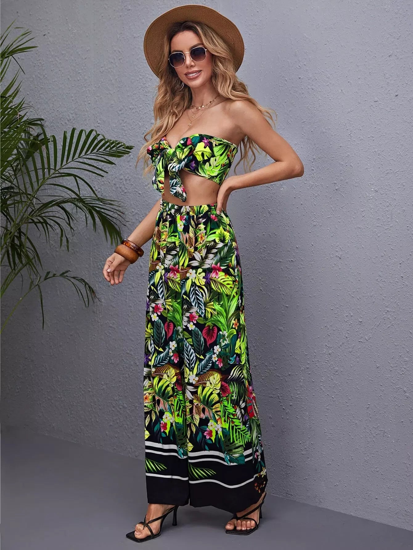 طقم بلوزة أنبوبي قصير بطبعة استوائية بطبعة استوائية وبنطال قصير قصير أمامي بربطة عنق