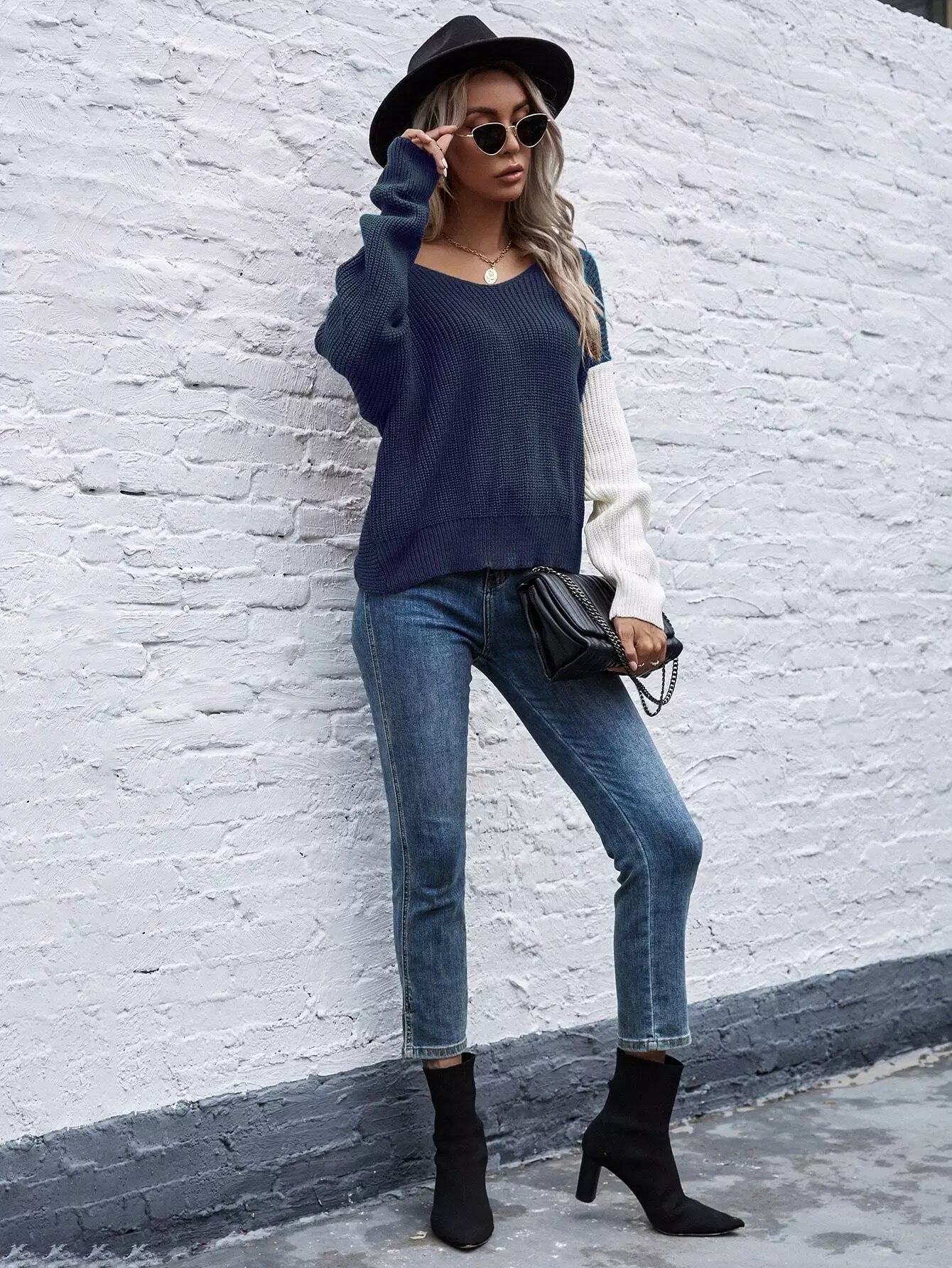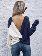 سترة منسدلة الكتفين بفتحة ظهر ملتوية ملونة منسدلة الكتفين