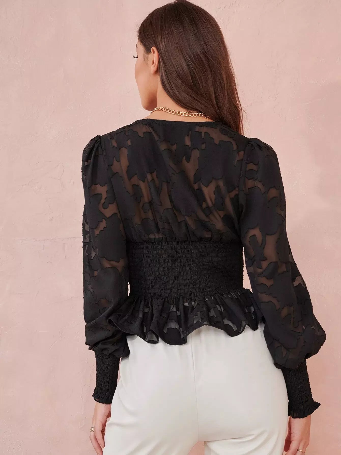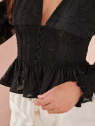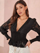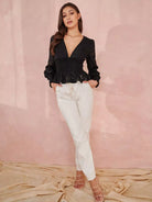 للنساء - بلوزة بيبلوم مكشكشة بياقة على شكل حرف V
