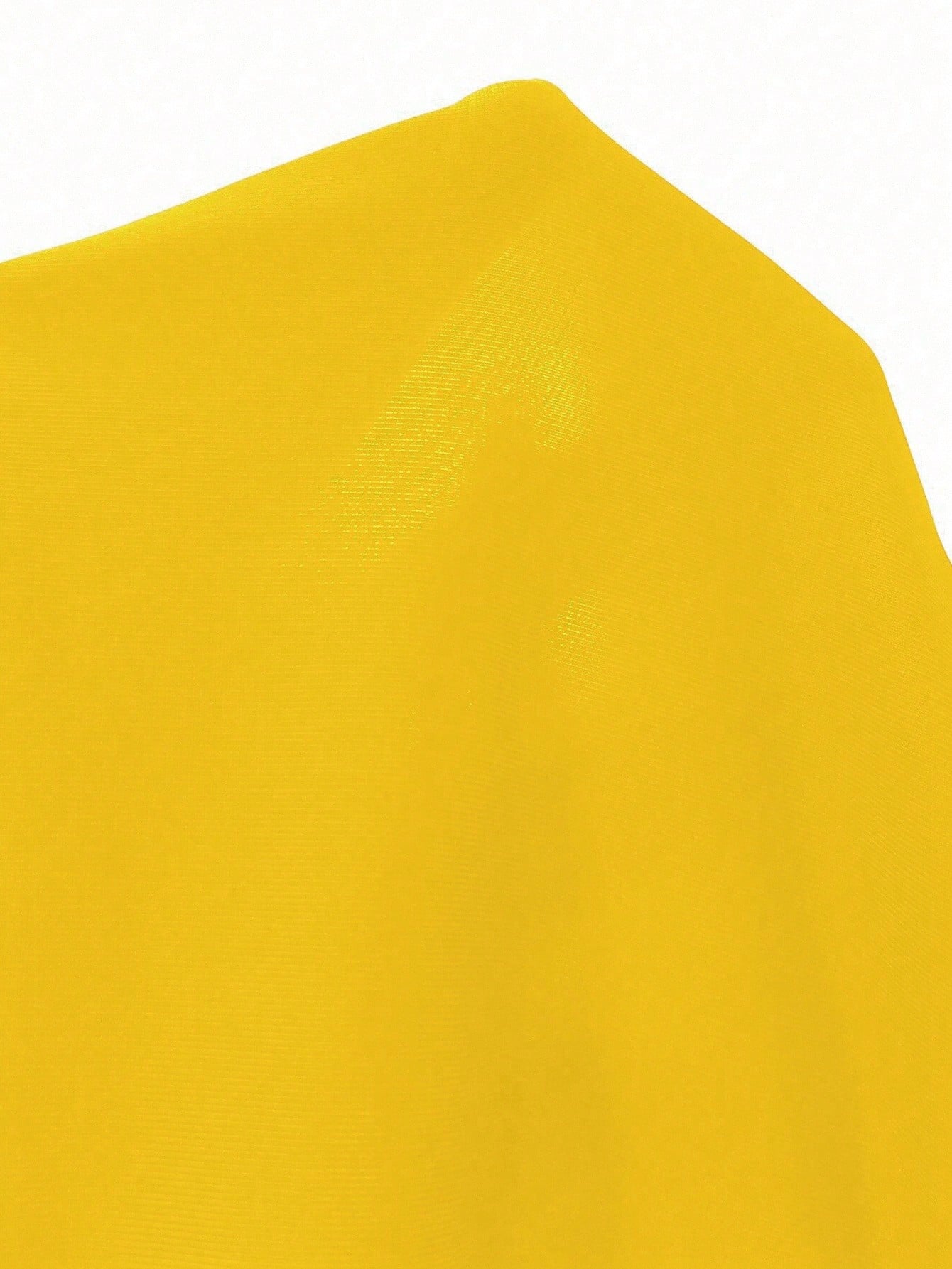 طقم من قطعتين من بلوزة تانك بياقة واقفة بلون سادة وتنورة متعددة الطبقات بحافة مكشكشة