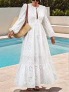 VCAY Women's Solid Color Front Tie Long Sleeve Casual Long Dress, 25SS, Beach Dress, Valentine's Day