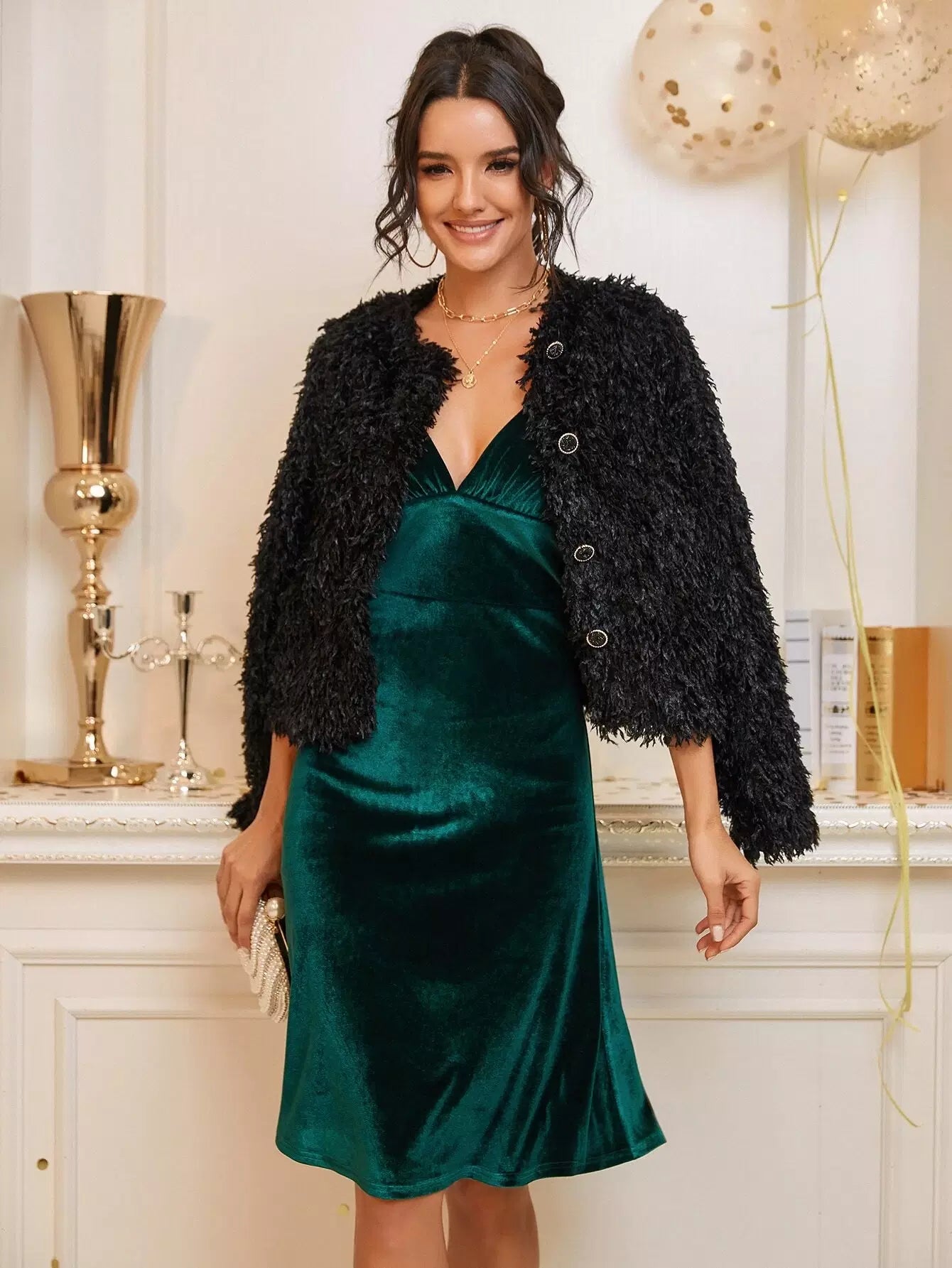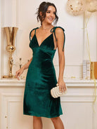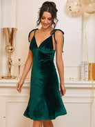 فستان كامي مخملي بحمالات عقدة