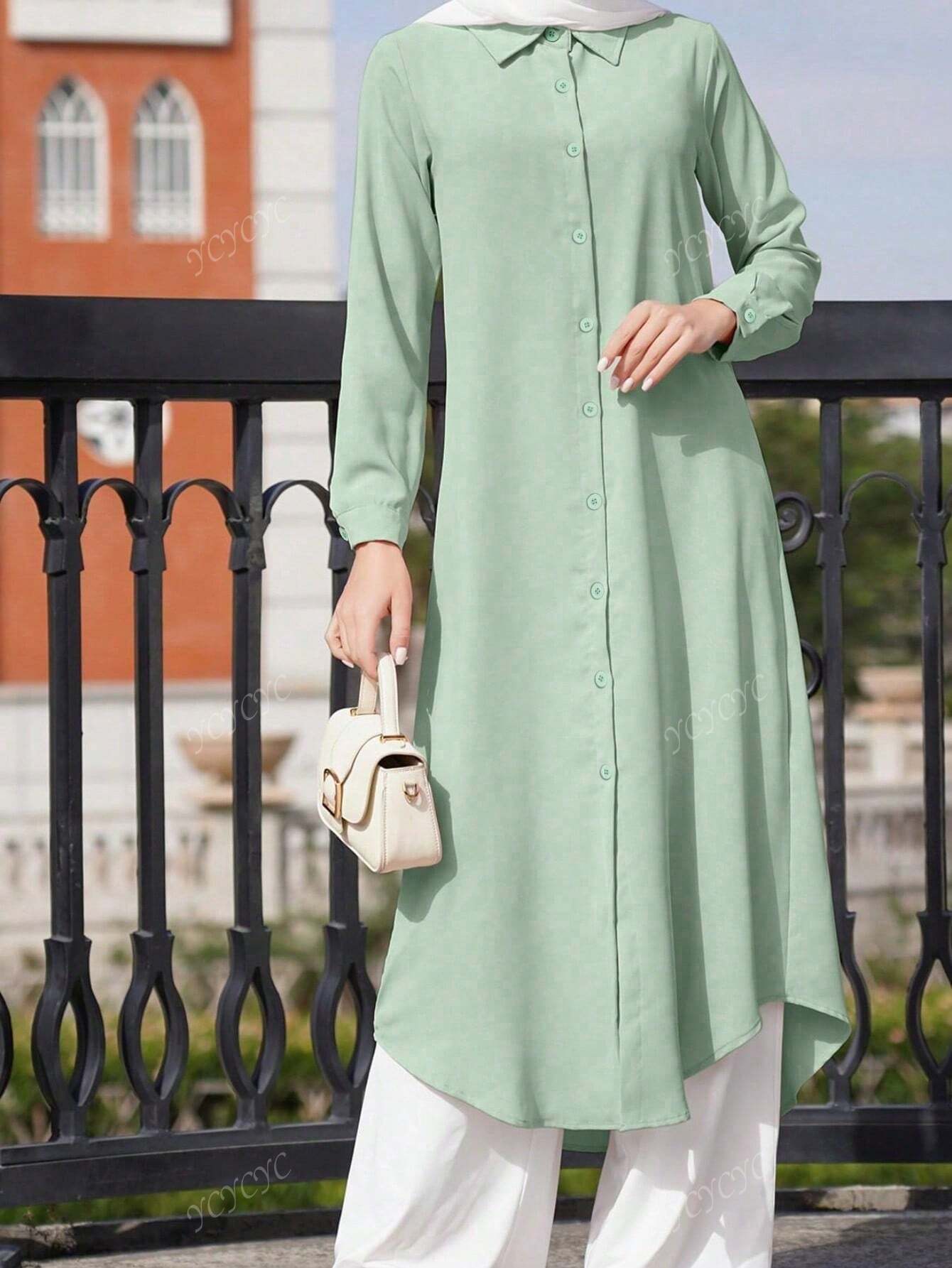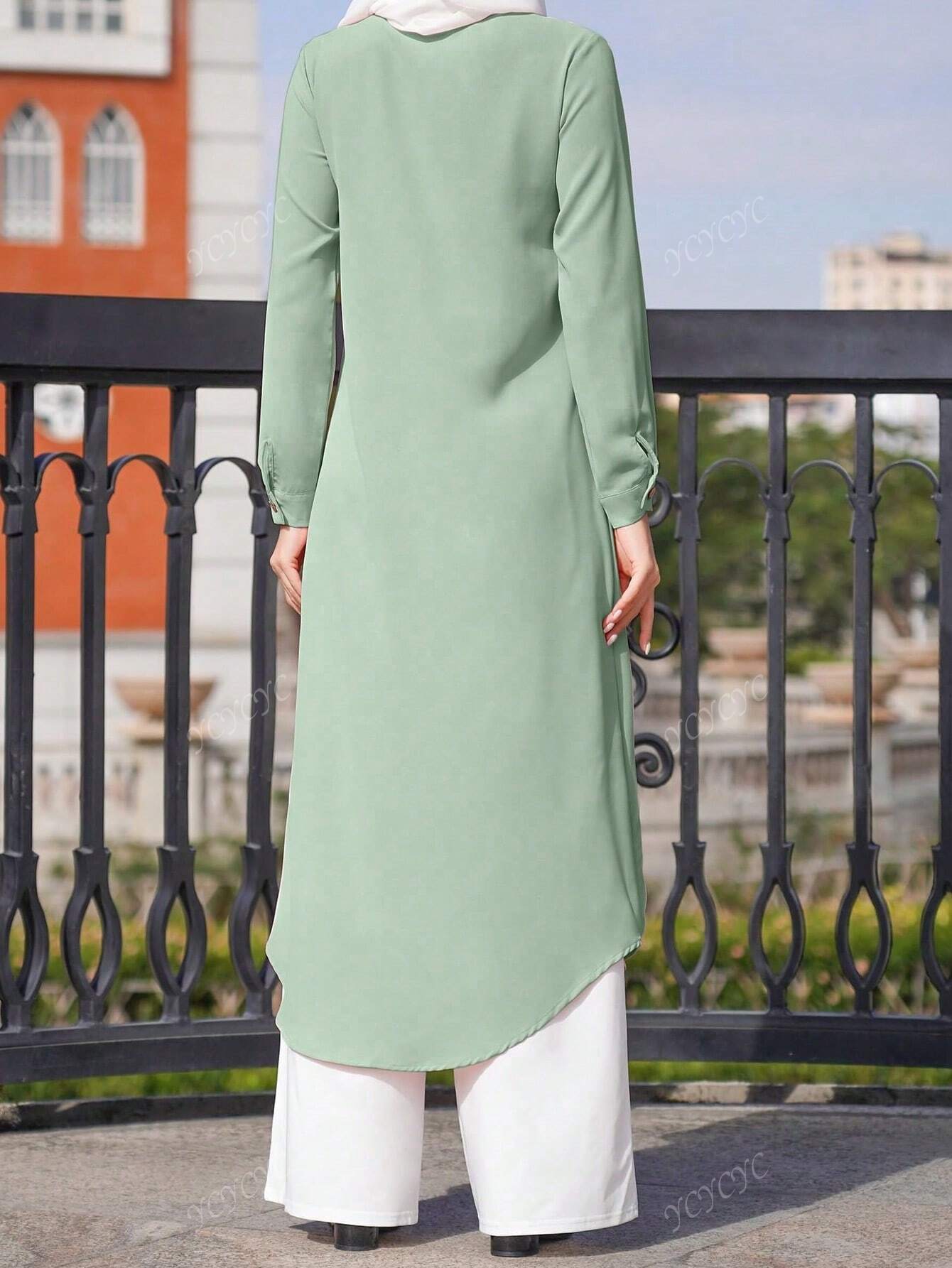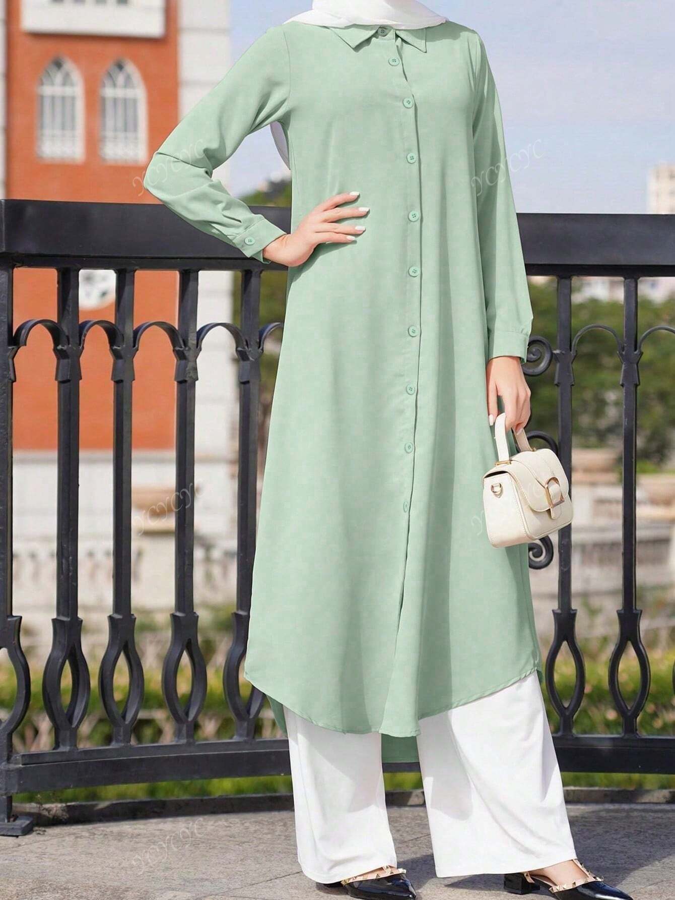 فستان عربي نسائي بأكمام طويلة بلون سادة