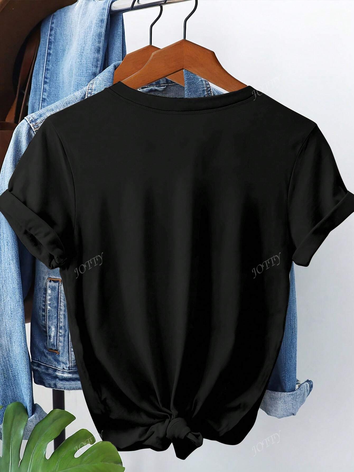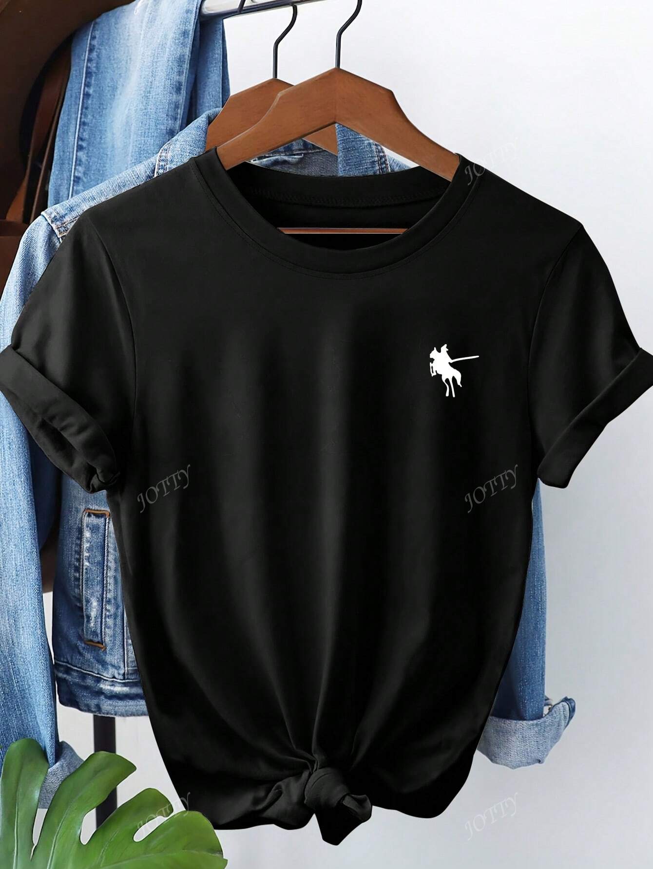 تي شيرت نسائي كاجوال برقبة دائرية وأكمام قصيرة وطبعة حصان فارس، ربيع