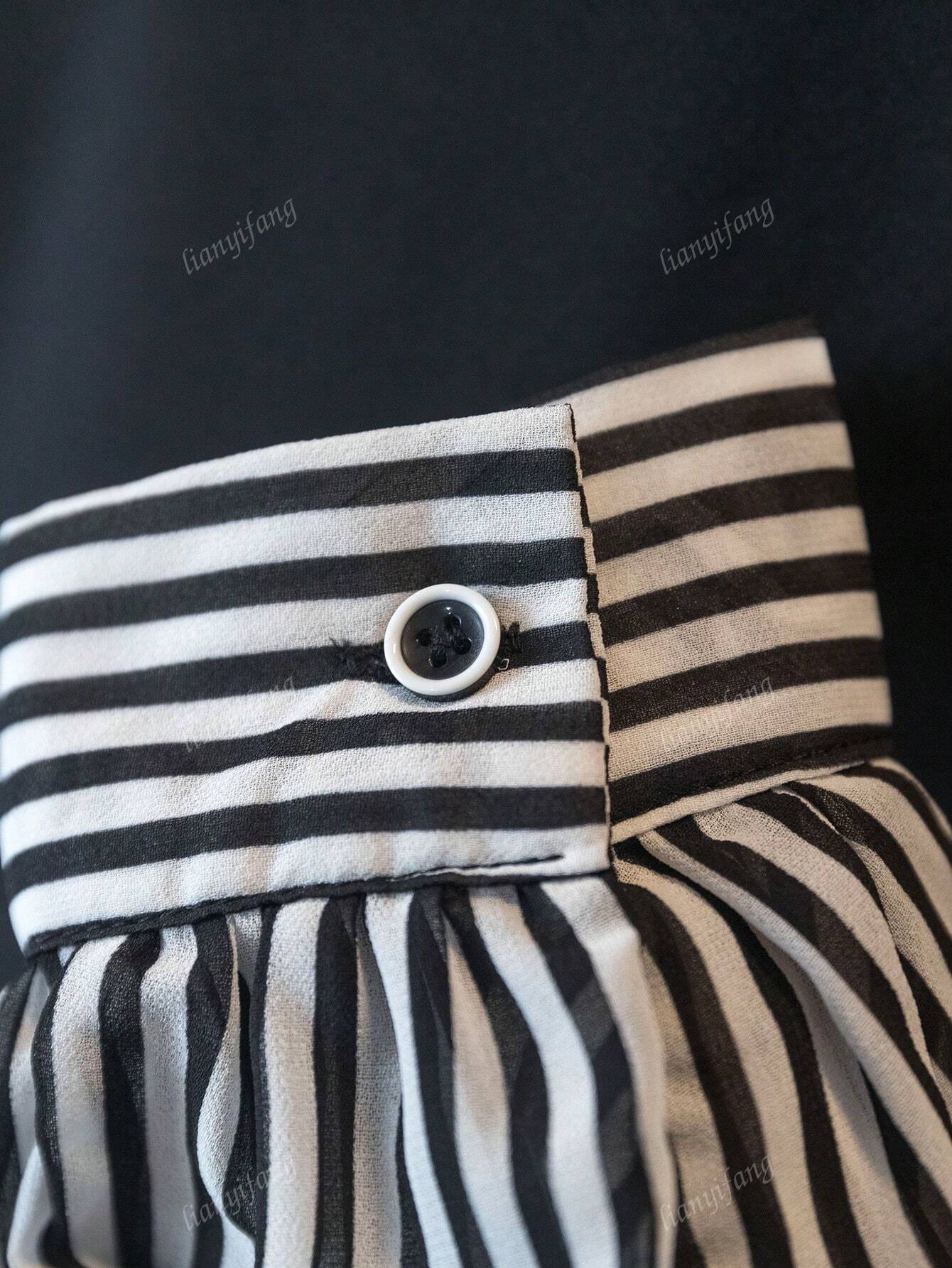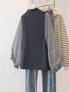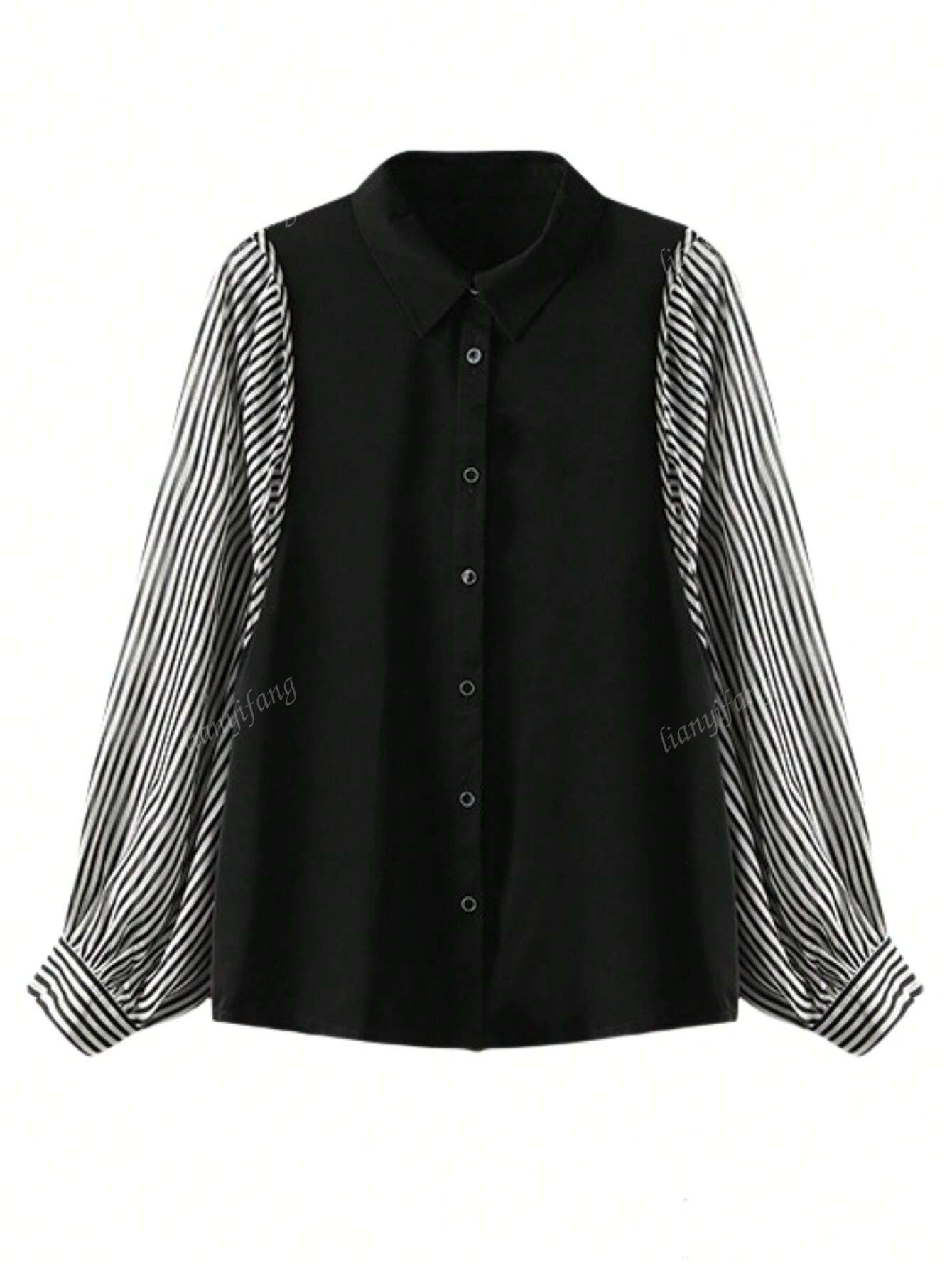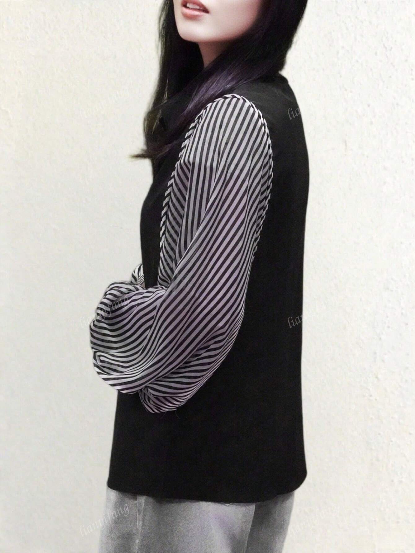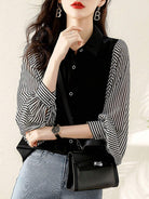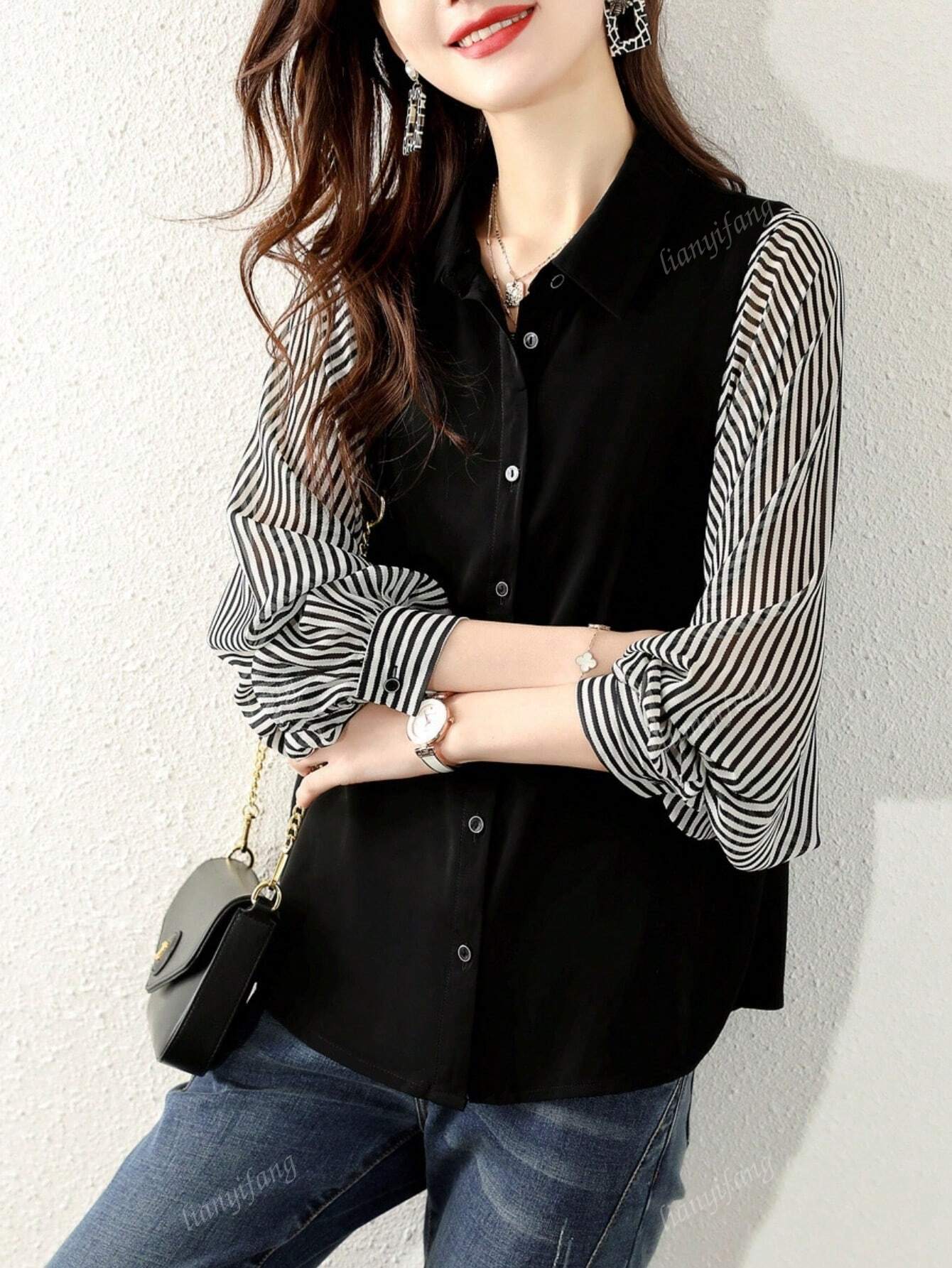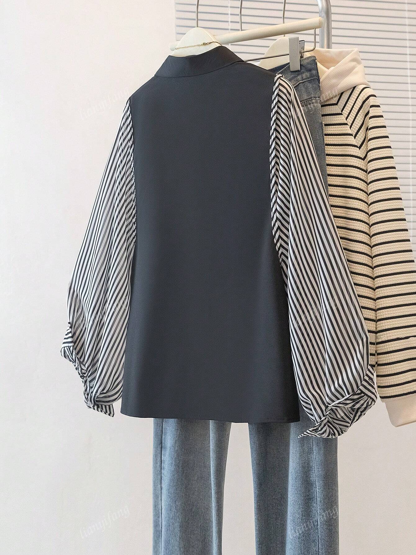 YUXIN 2025 Spring & Summer Korean - Style Striped Patchwork Shirt, Lantern - Sleeve Chiffon Patchwork,