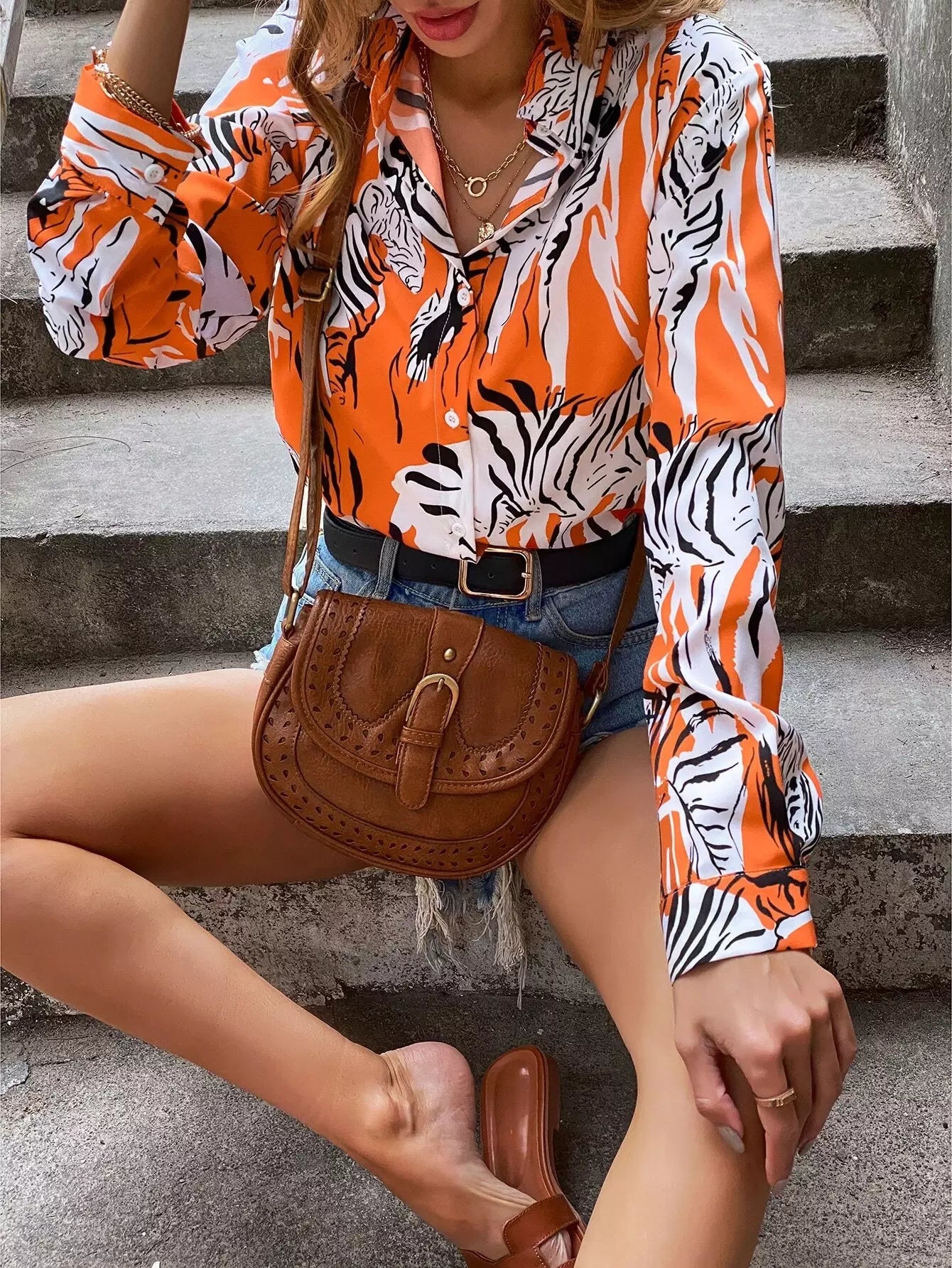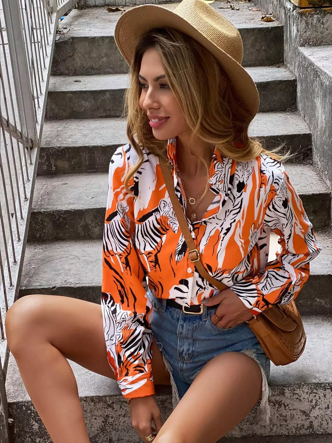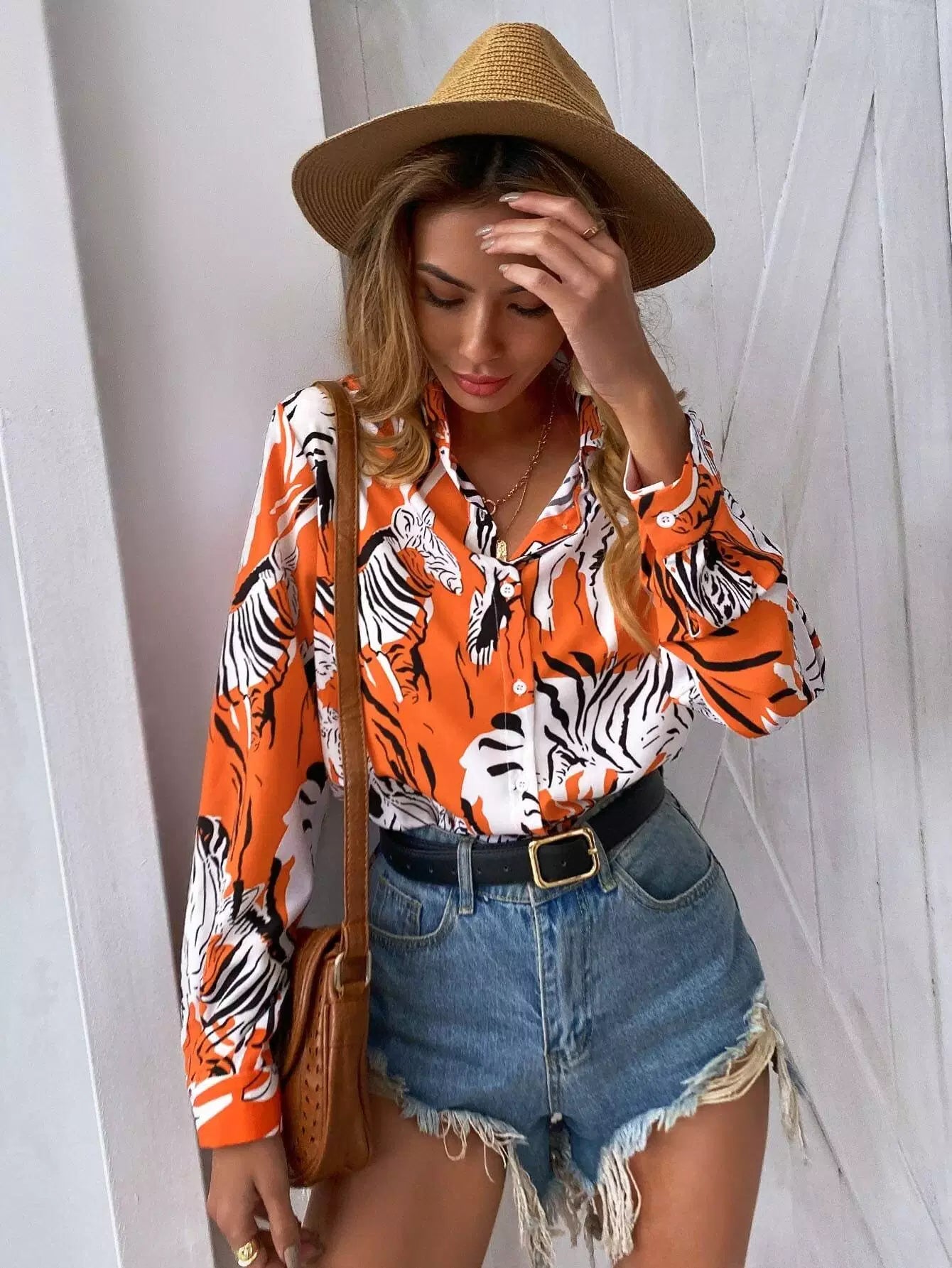 بلوزة بطبعة حمار وحشي بأزرار أمامية