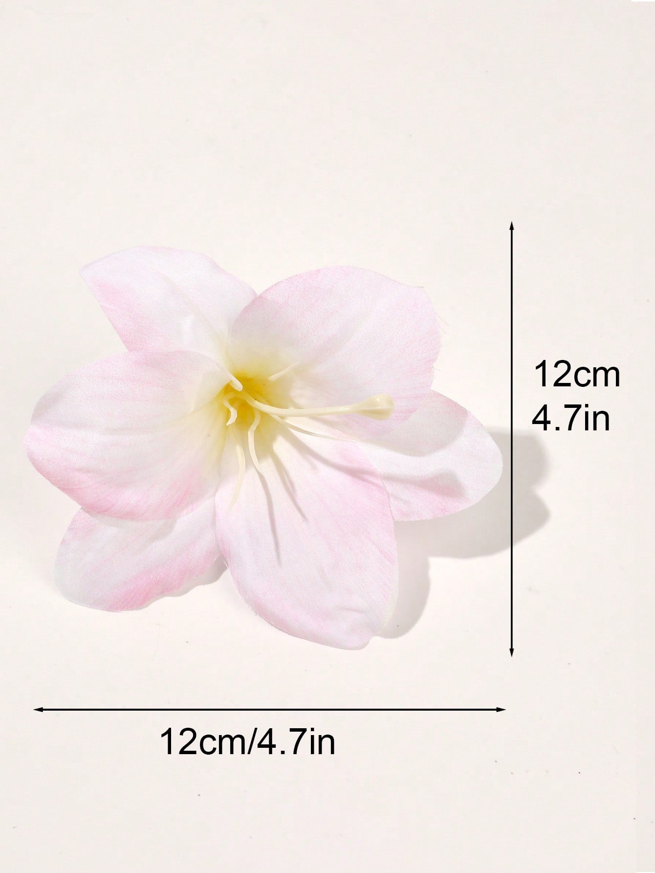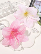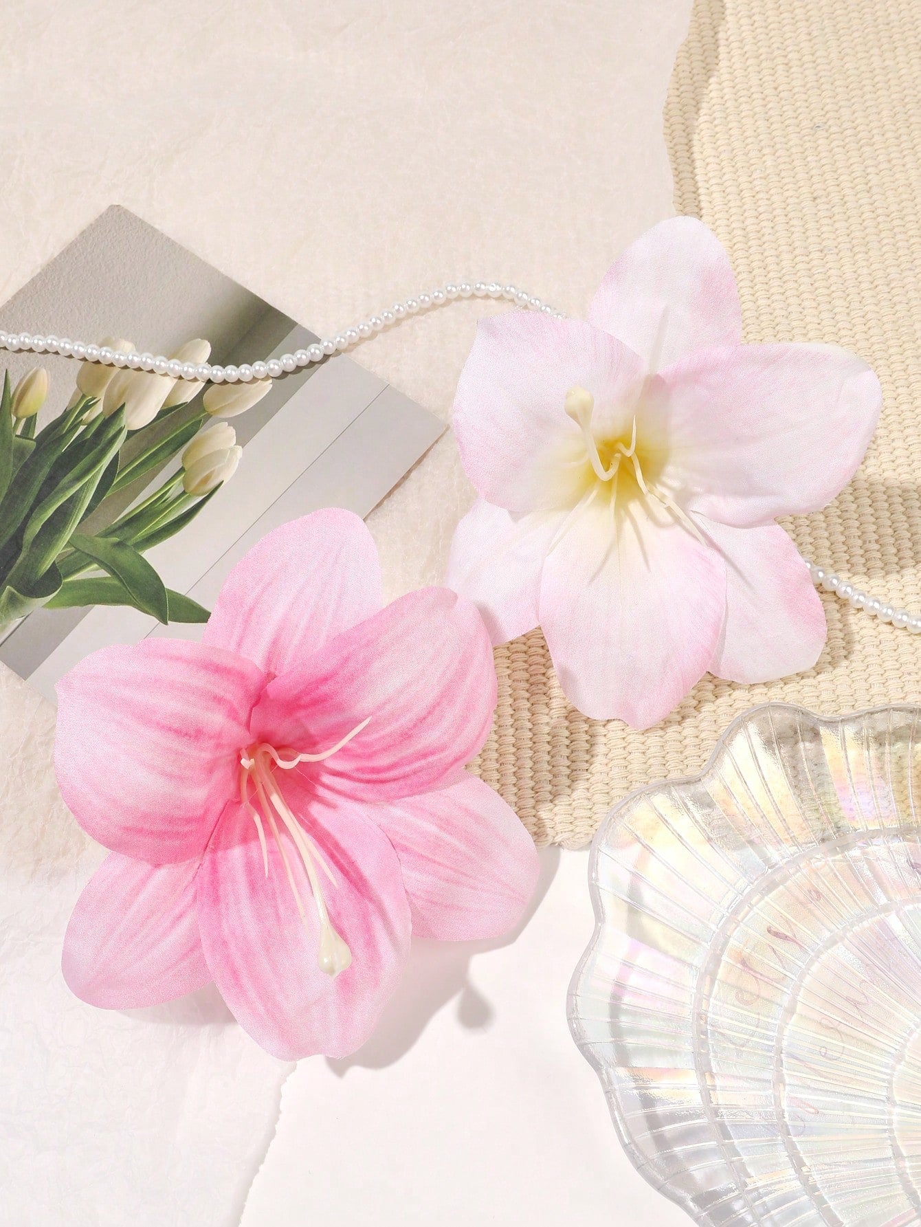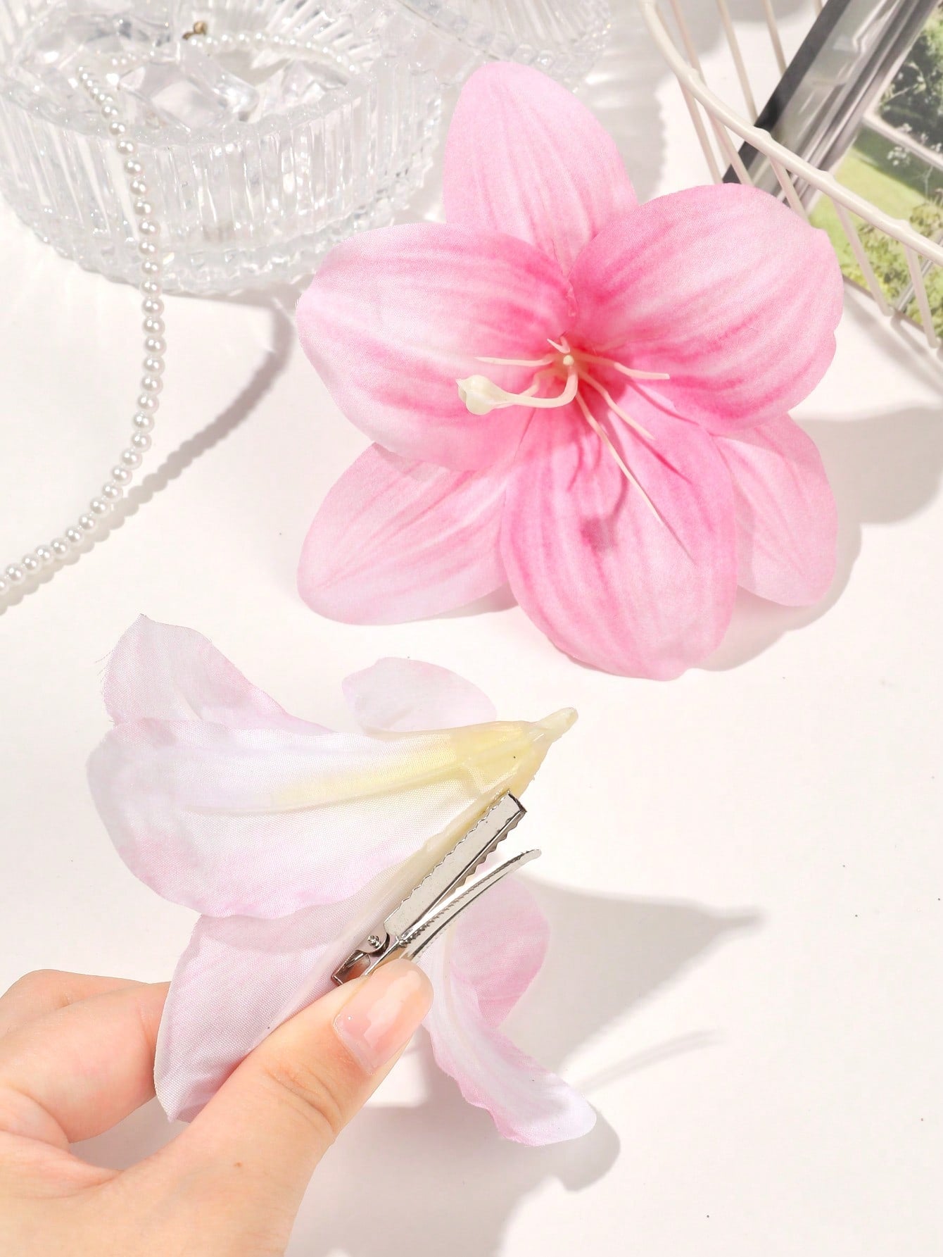 قطعتان من مشابك الشعر الجانبية المزخرفة على شكل زهرة زنبق صناعية وردية اللون، بتصميم بوهيمي أنيق وجميل، مناسبة لعطلات الشاطئ.