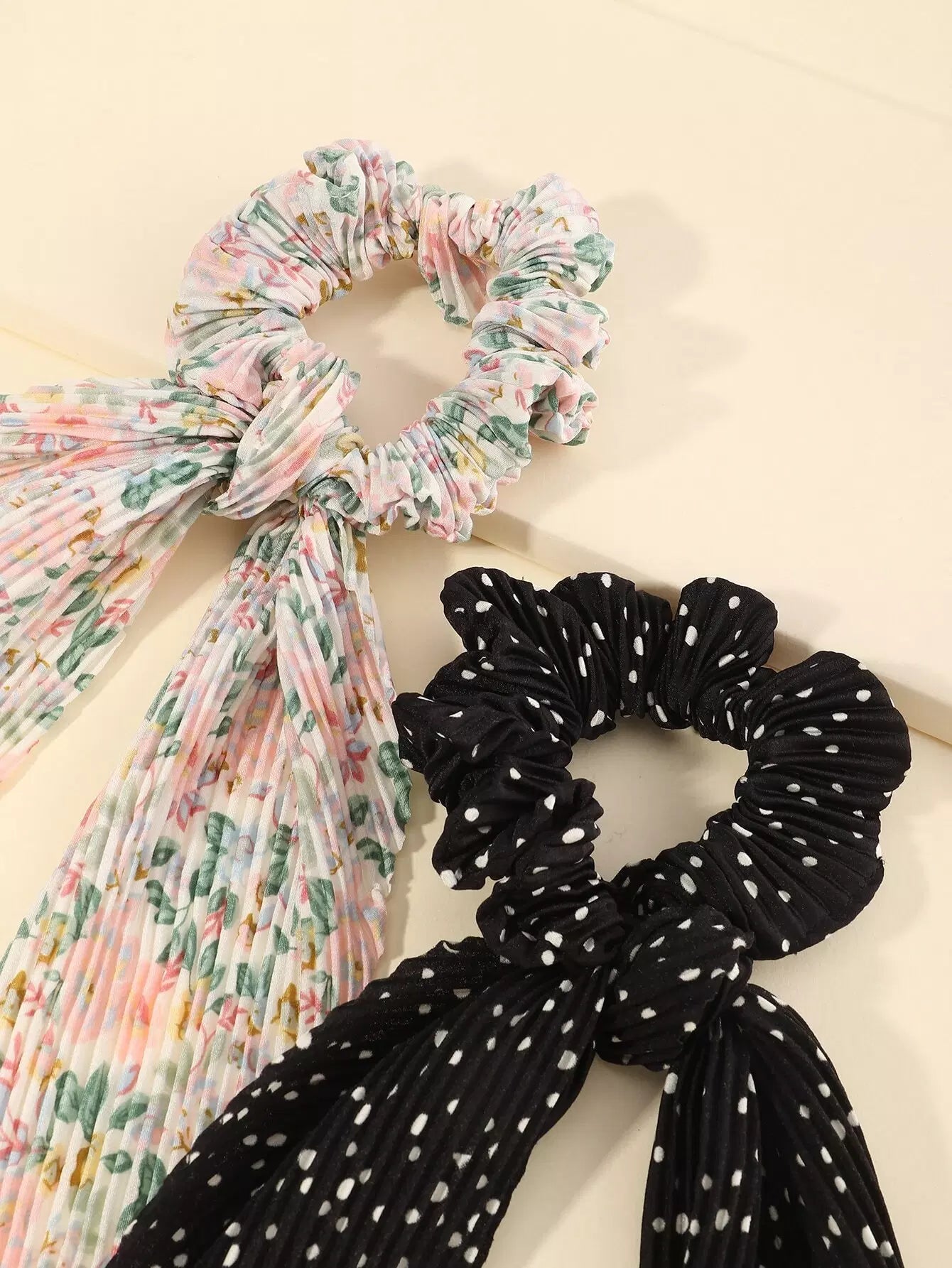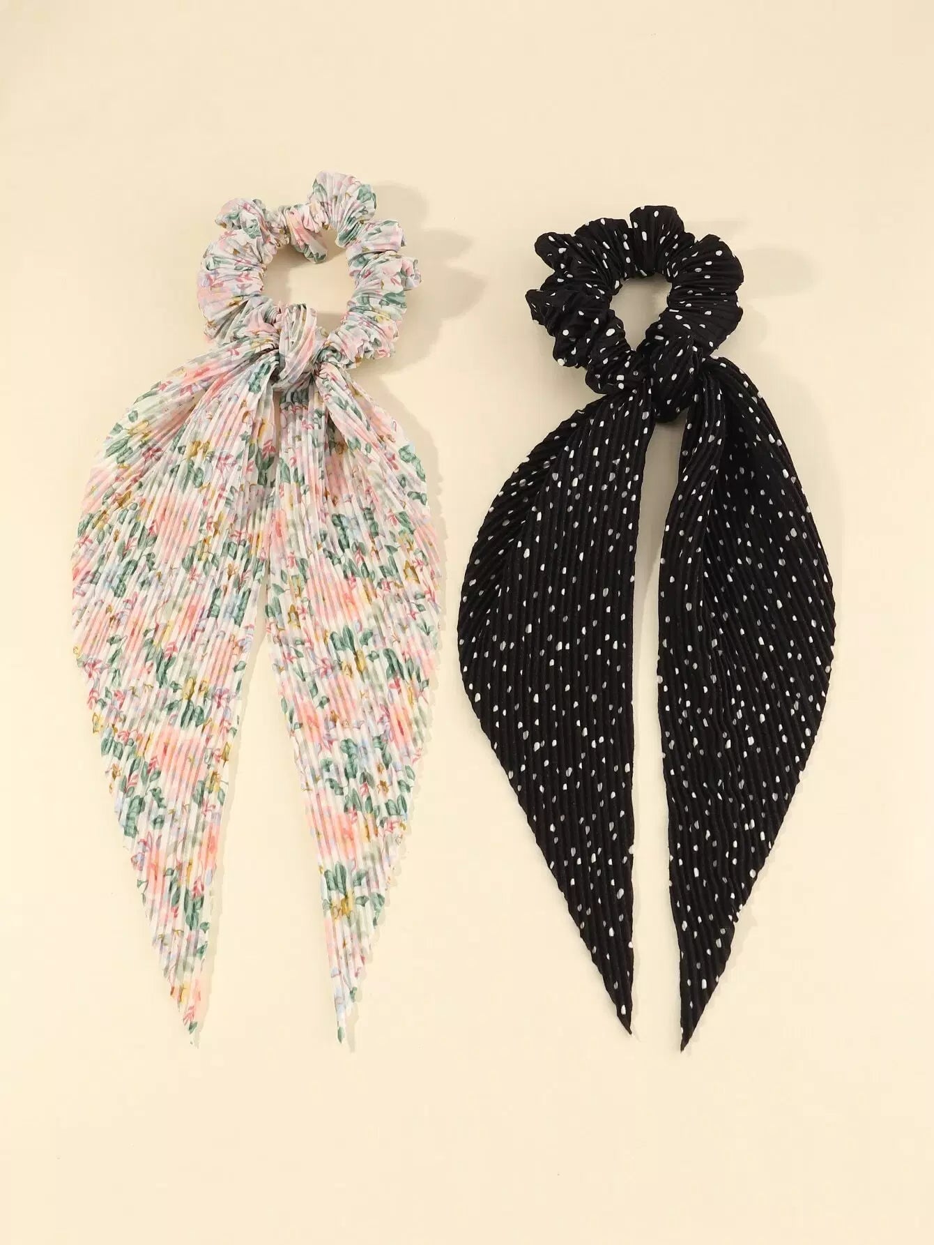 2 قطعة وشاح سكرانشي بطبعة زهور 2 قطعة