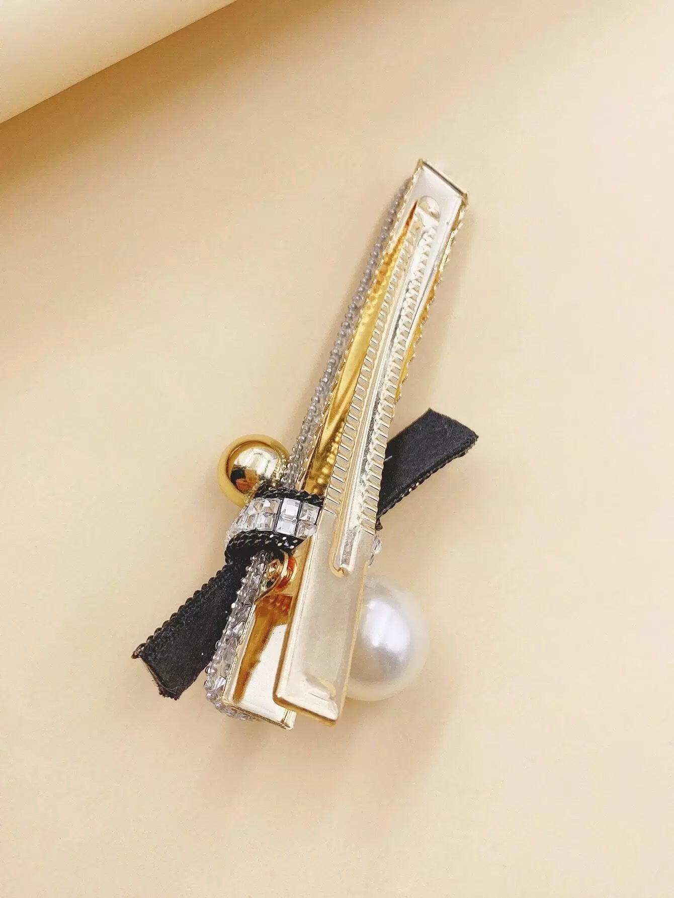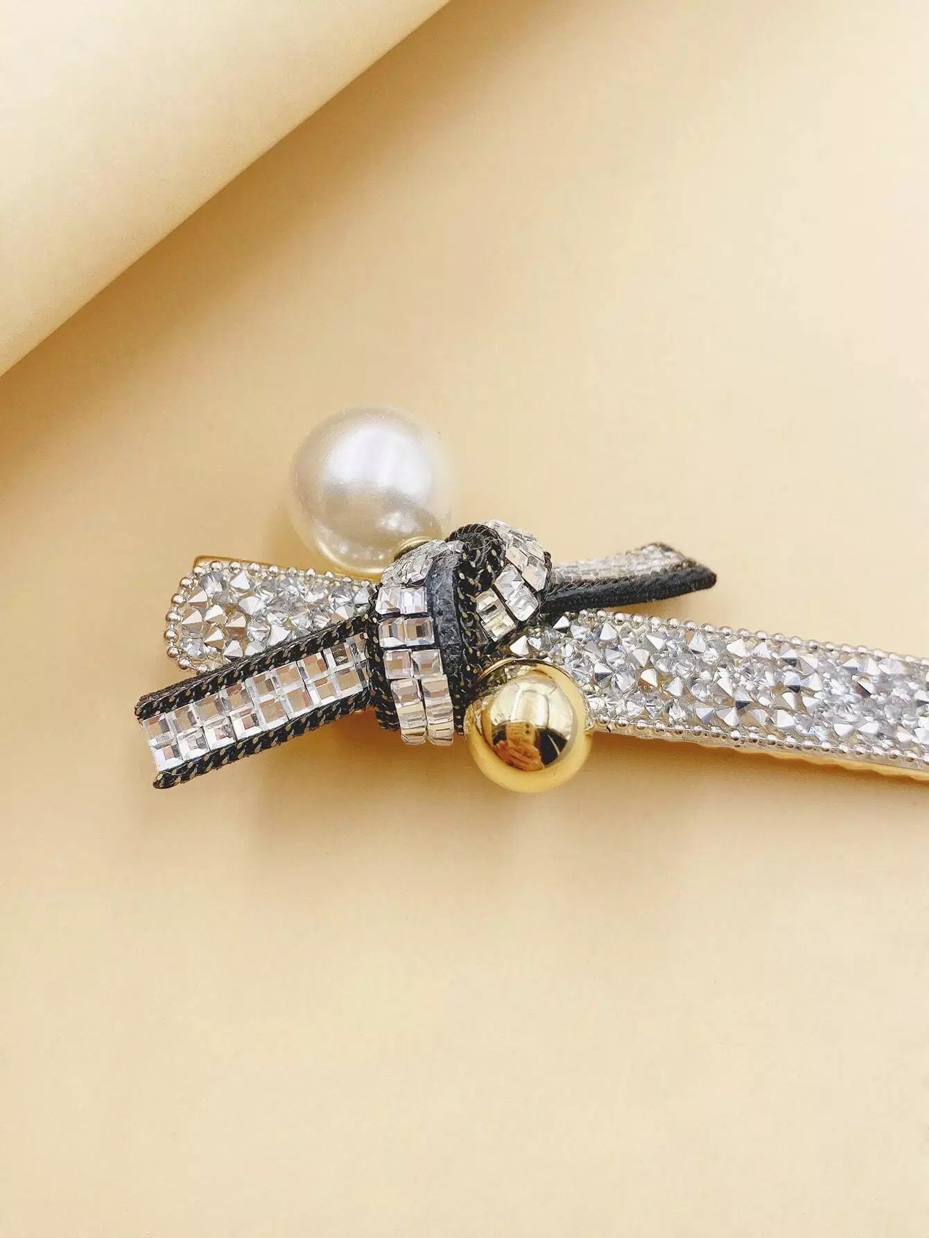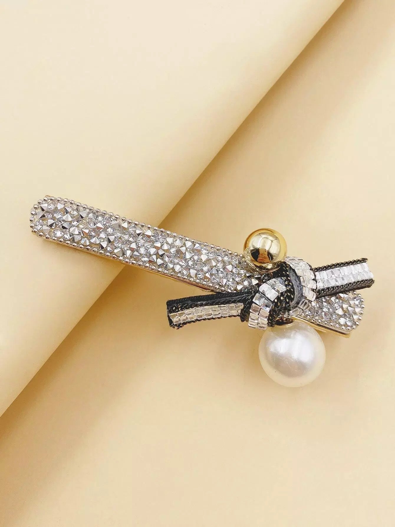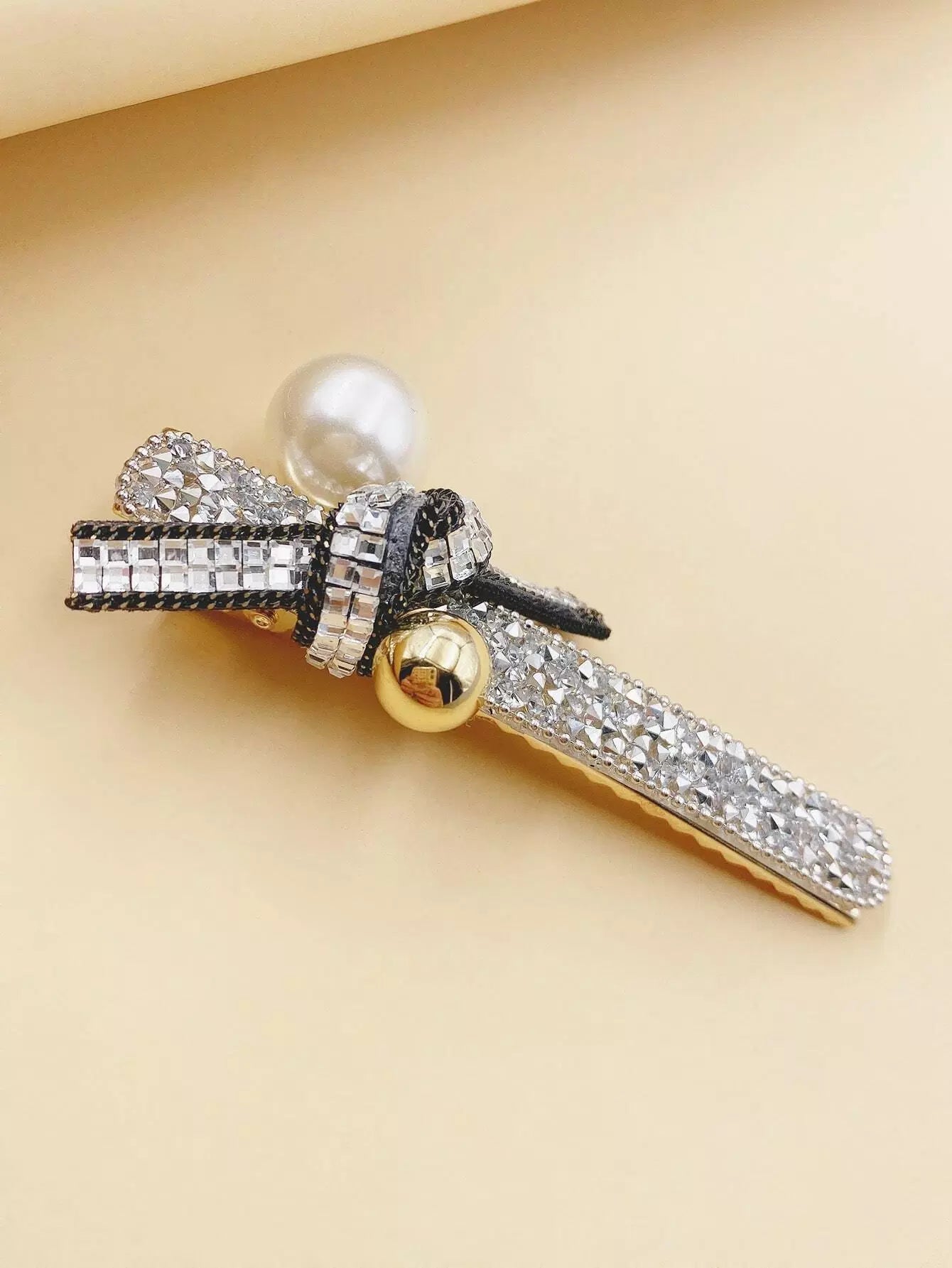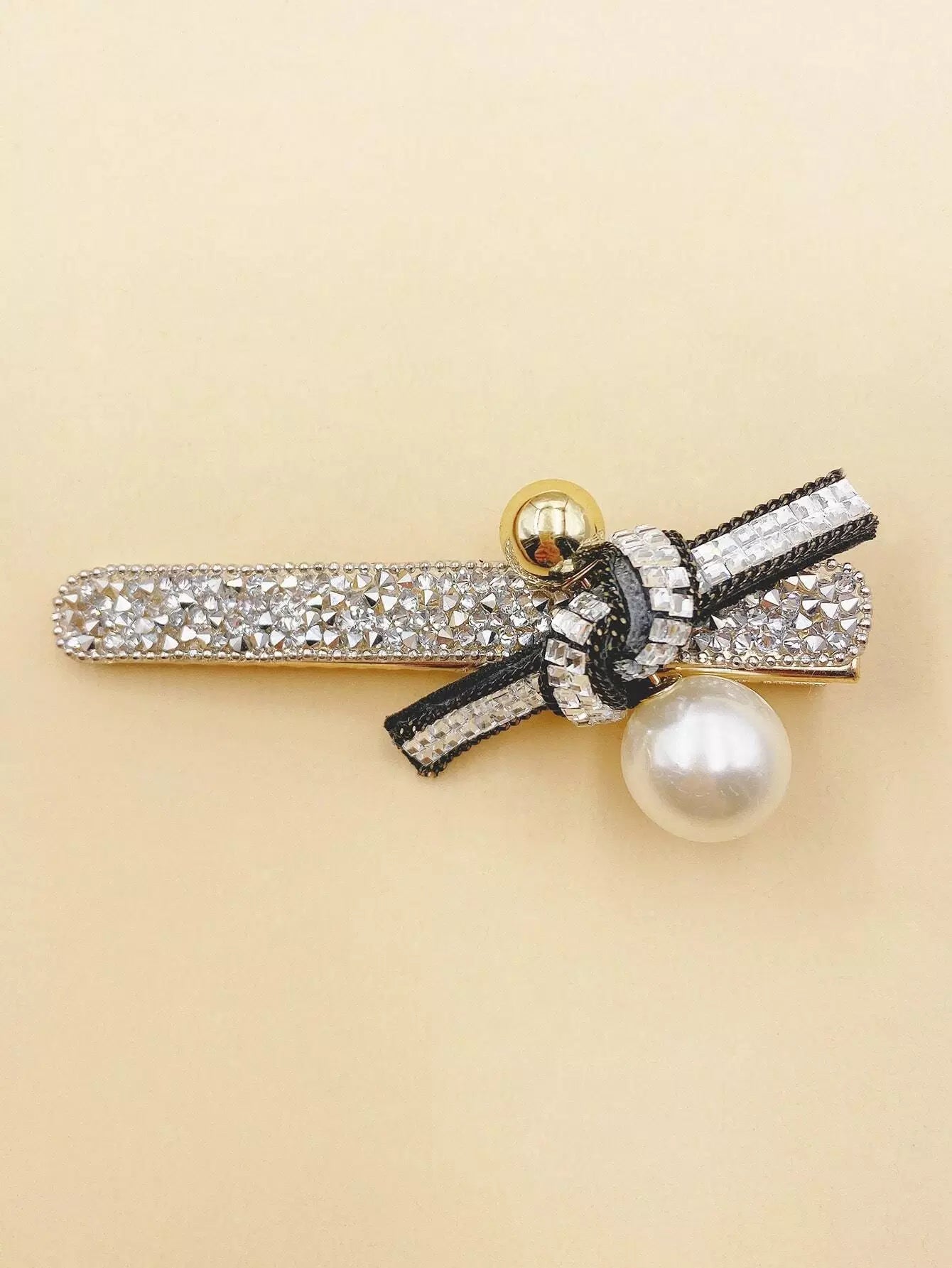 مشبك شعر مزين باللؤلؤ الصناعي وأحجار الراين