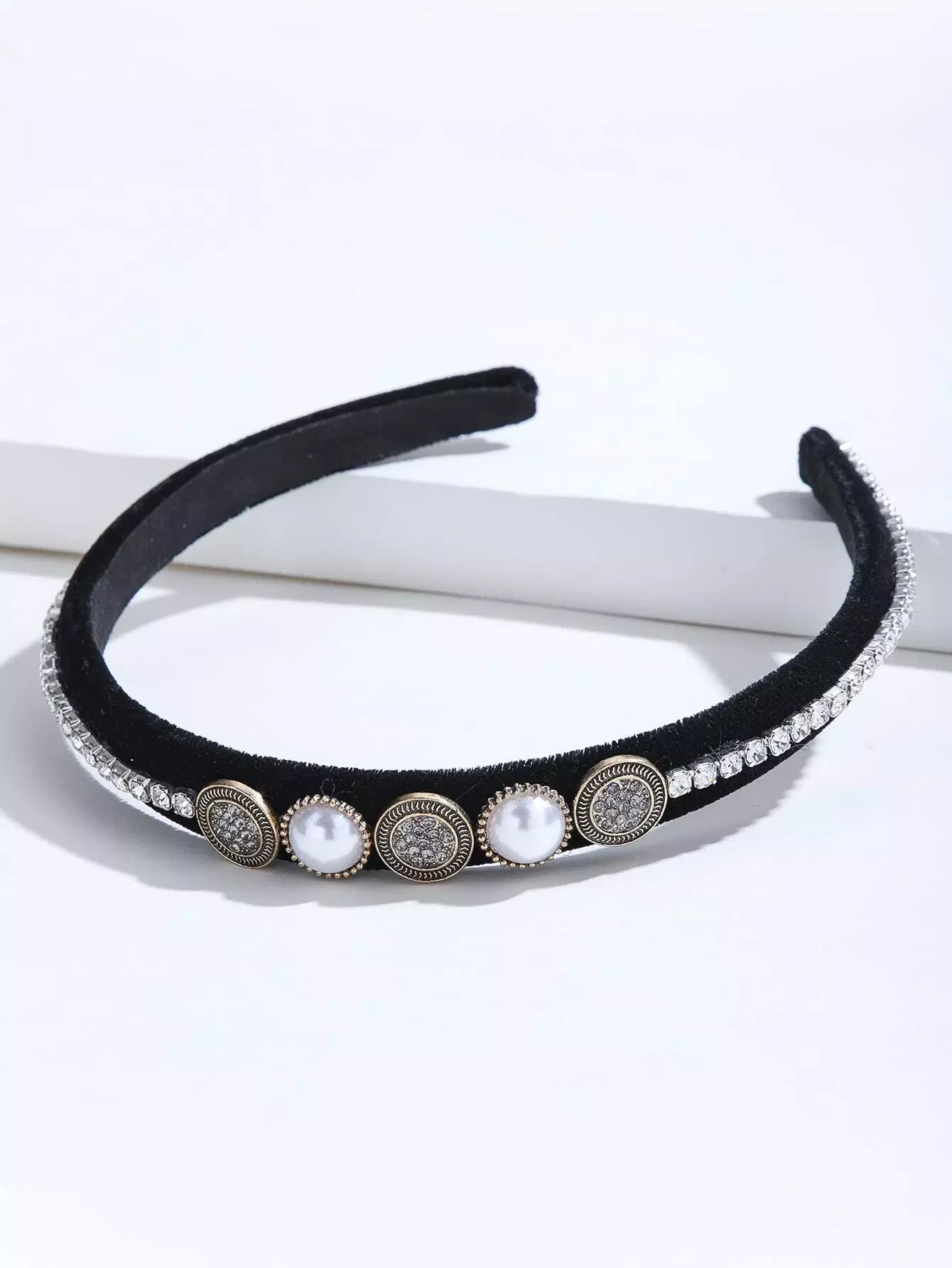 طوق رأس مزين باللؤلؤ الصناعي وحجر الرين