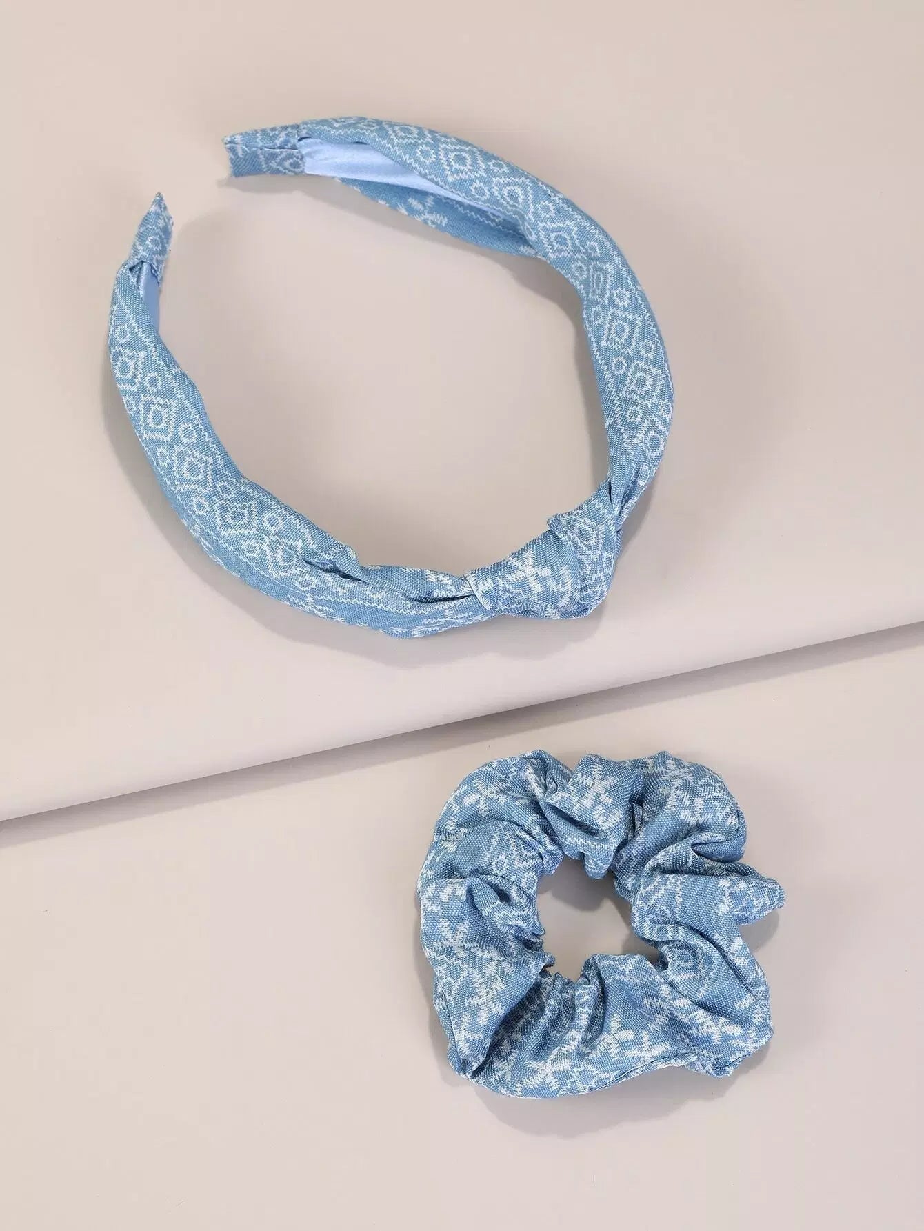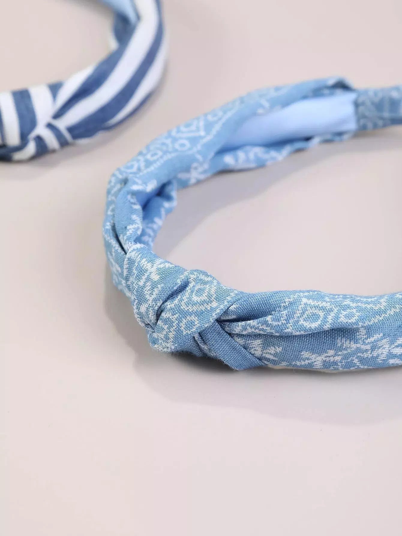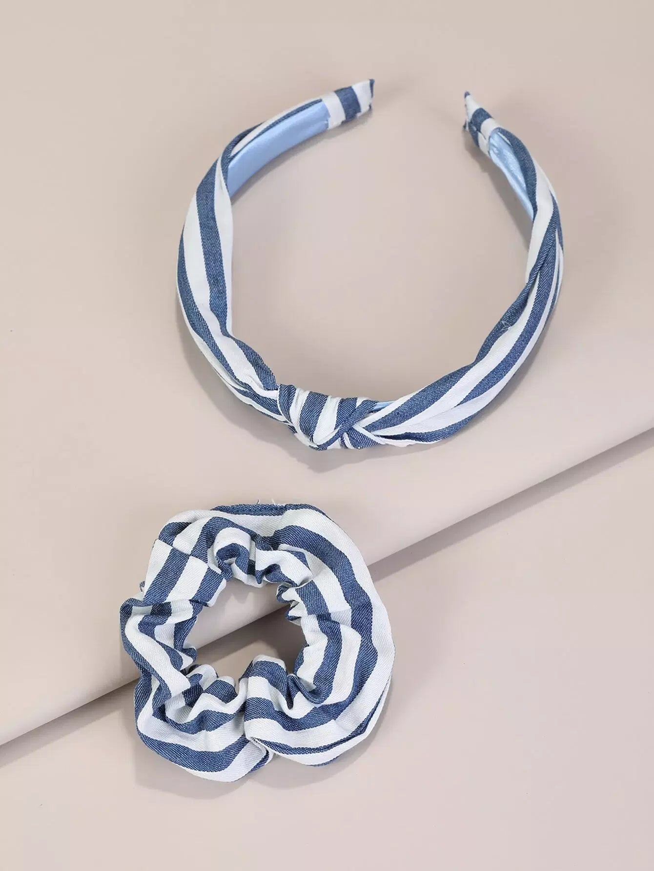للنساء - قطعتان من طوق الشعر بنمط هندسي مخطط و2 قطعة ربطة شعر