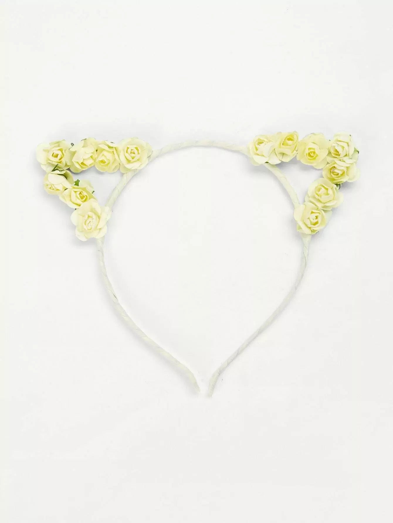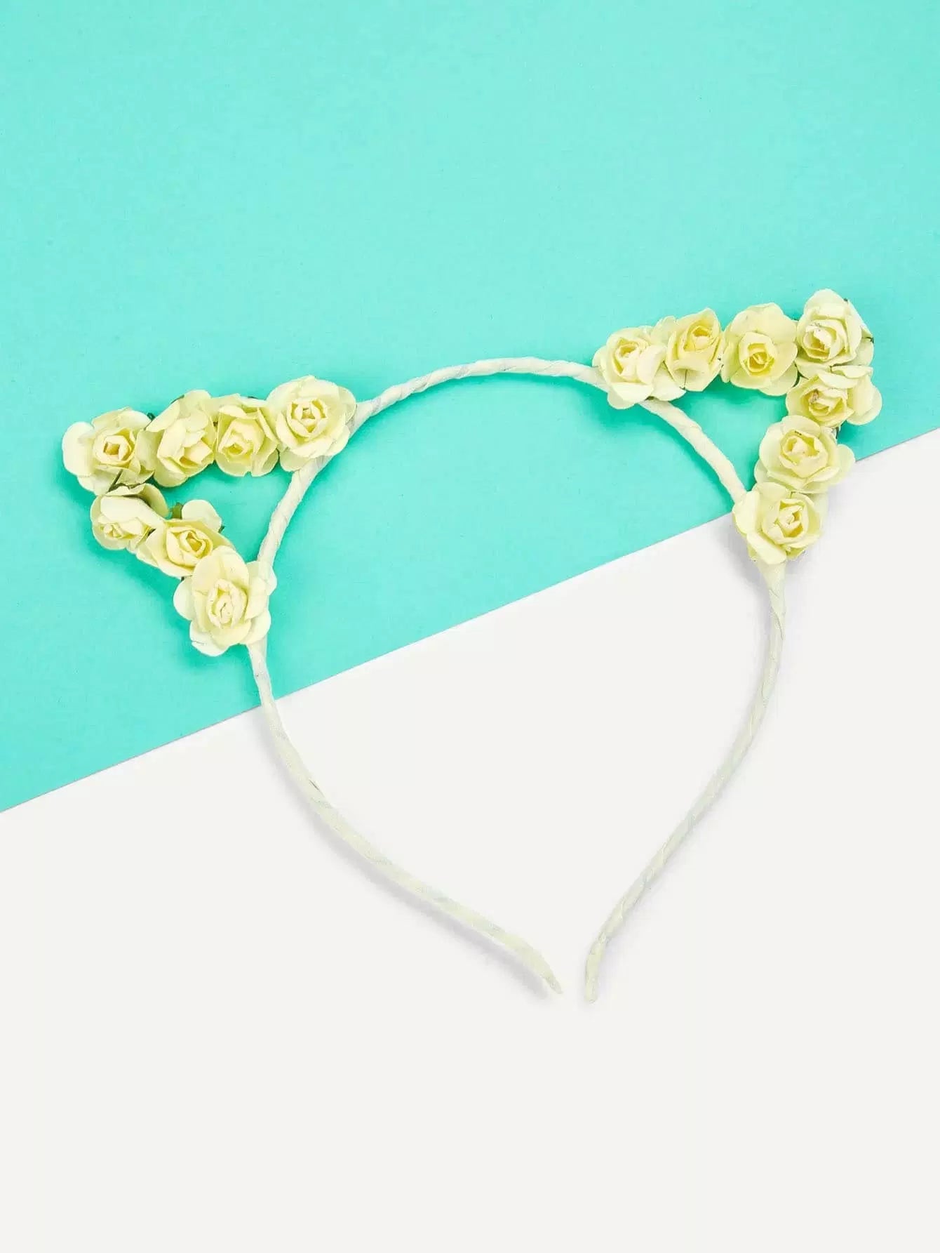 طوق رأس مزين بأذن قطة مزين بالزهور