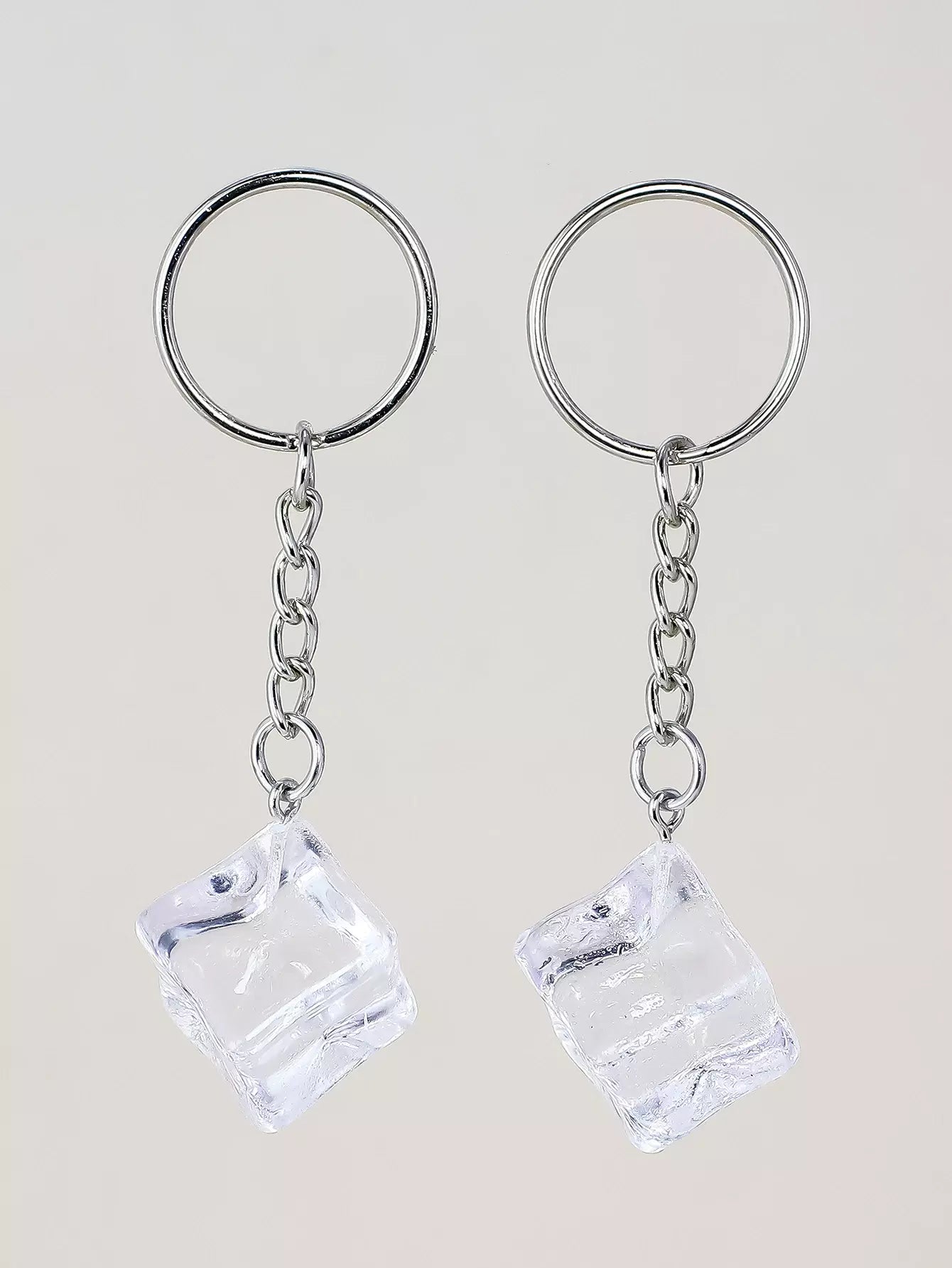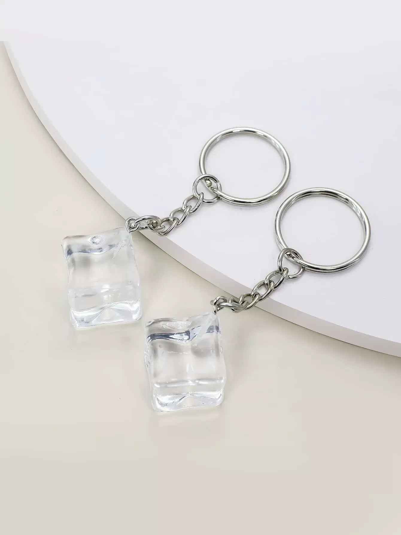 سلسلة مفاتيح شفافة على شكل هندسي مكونة من قطعتين