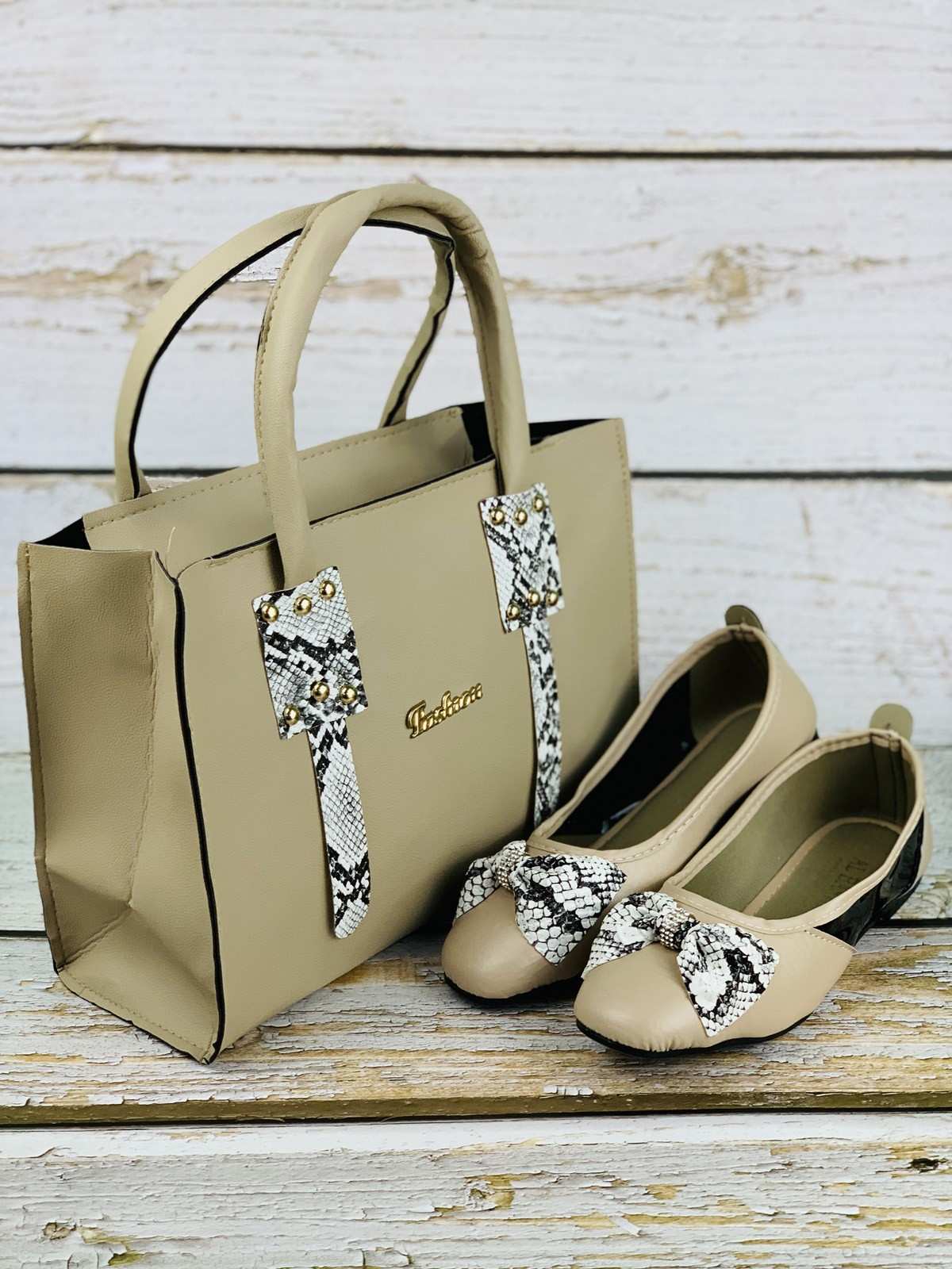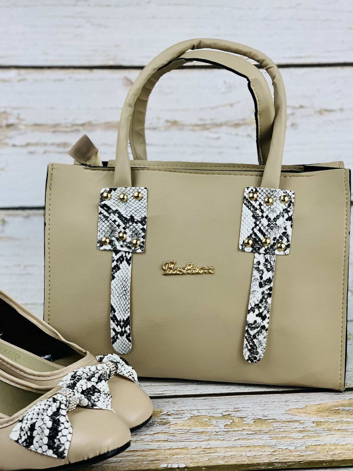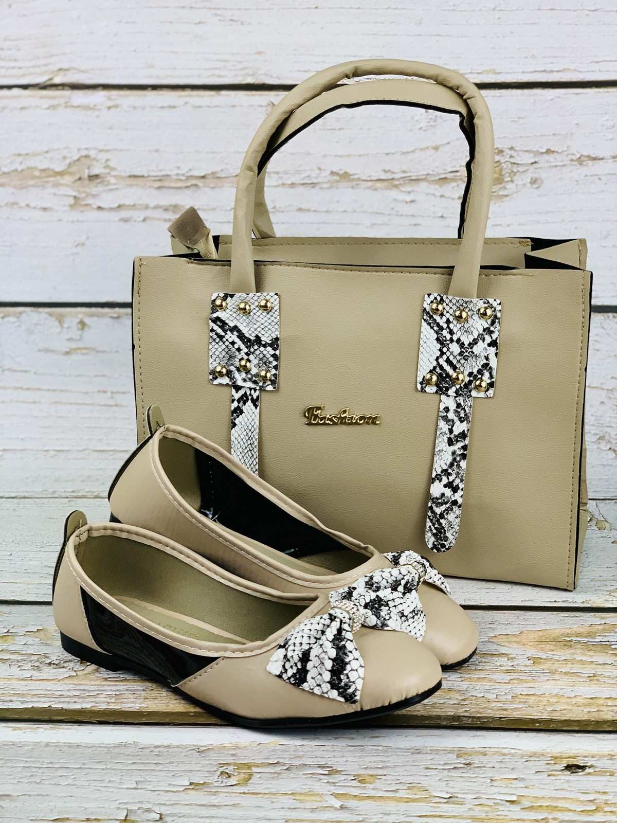 حقيبة وحذاء بيج بنمط ثعبان مزخرف