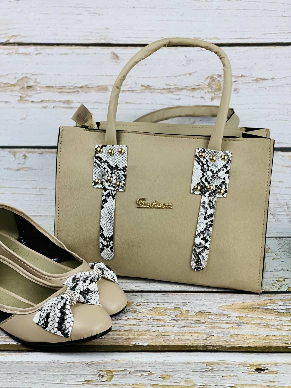للنساء - حقيبة وحذاء بيج بنمط ثعبان مزخرف