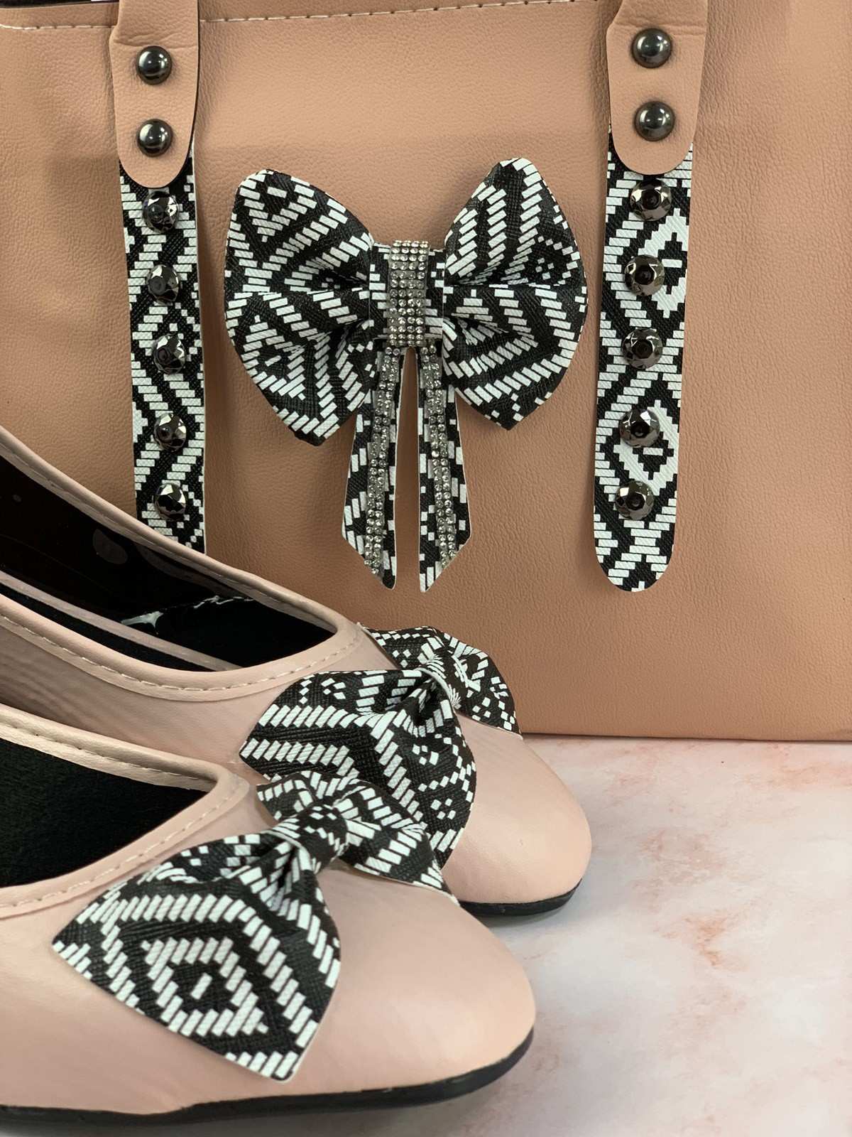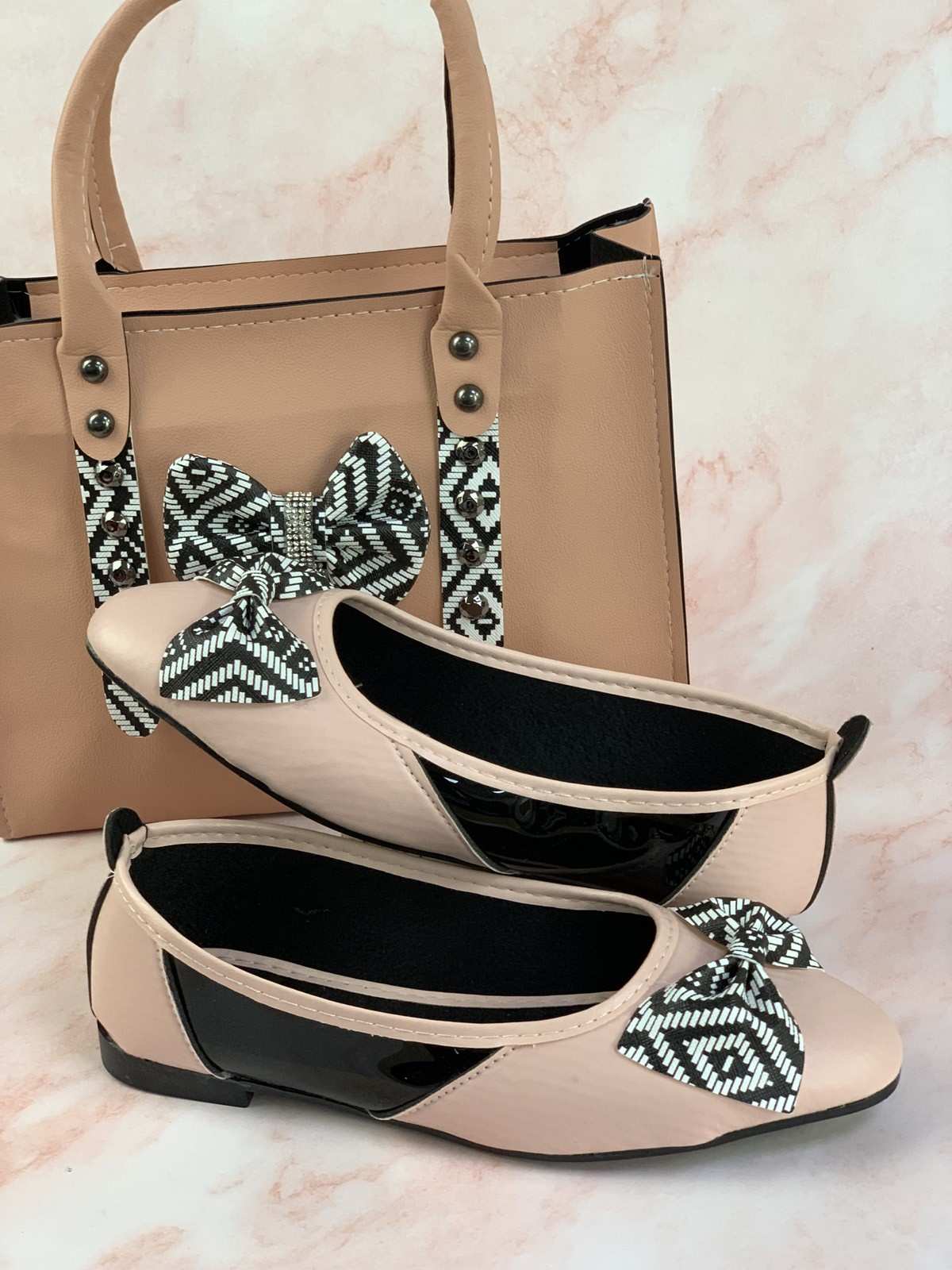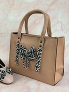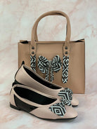 حقيبة وحذاء بيج بنمط ثعبان مزخرف