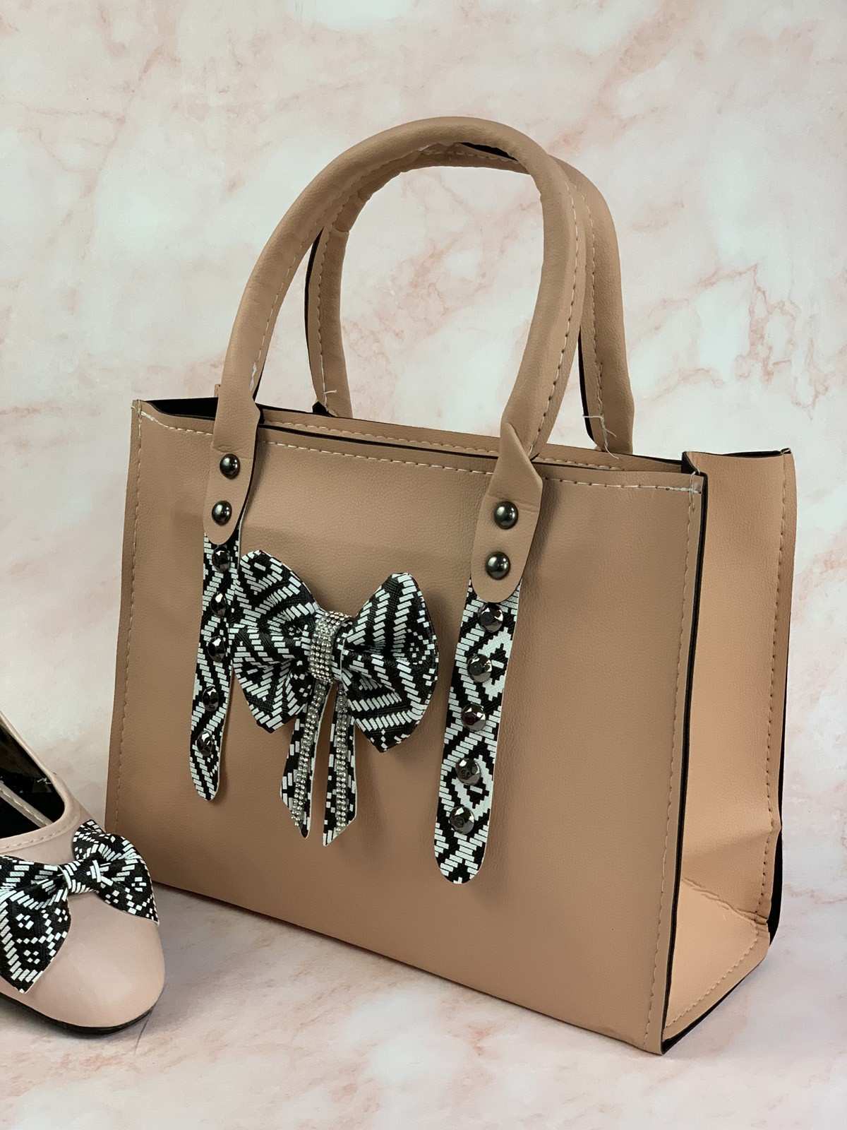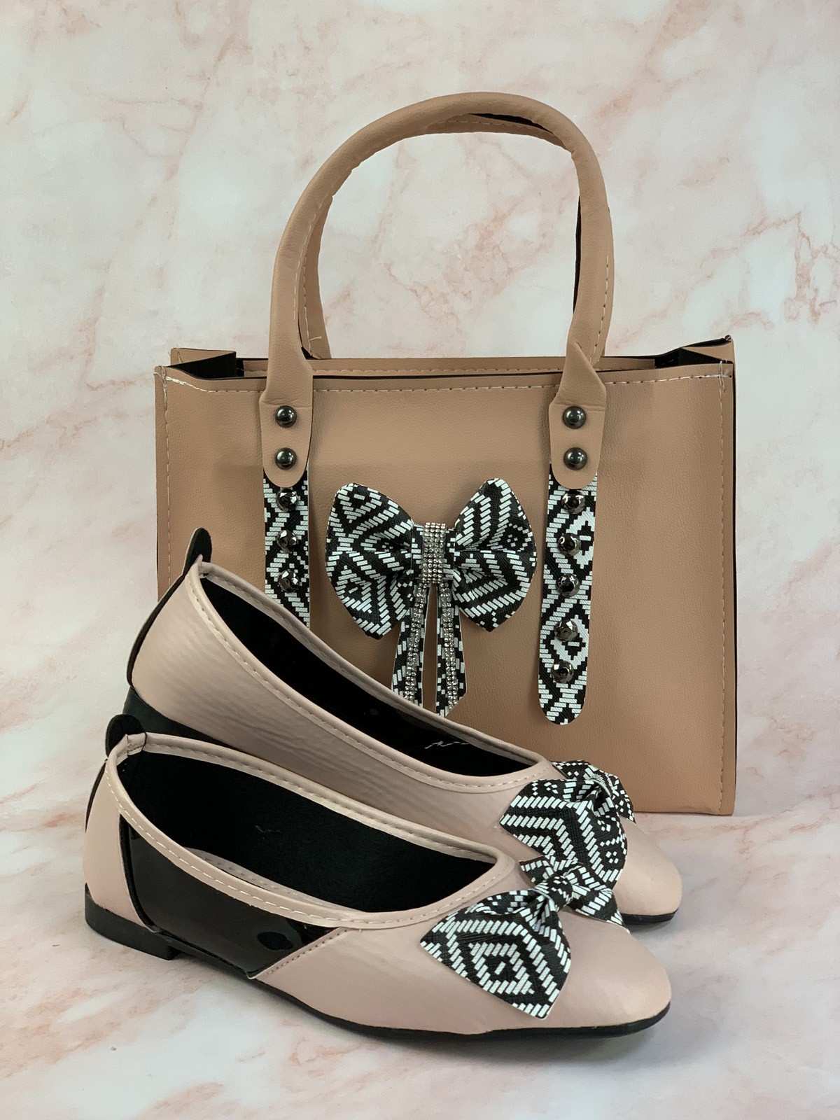 للنساء - حقيبة وحذاء بيج بنمط ثعبان مزخرف