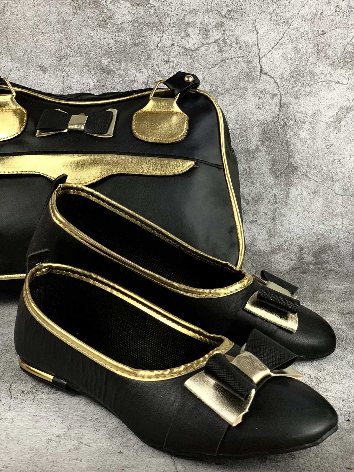 للنساء - حقيبة ومحفظة وحذاء باللون الأسود مزين بزهرة ذهبية