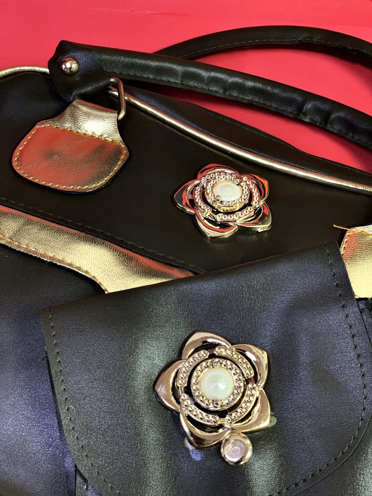 للنساء - حقيبة سوداء بها محفظة وزهرة ذهبية
