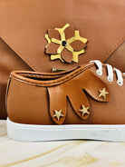 للنساء - حقيبة بنية اللون وحذاء رياضي مزين بزهرة مزخرفة