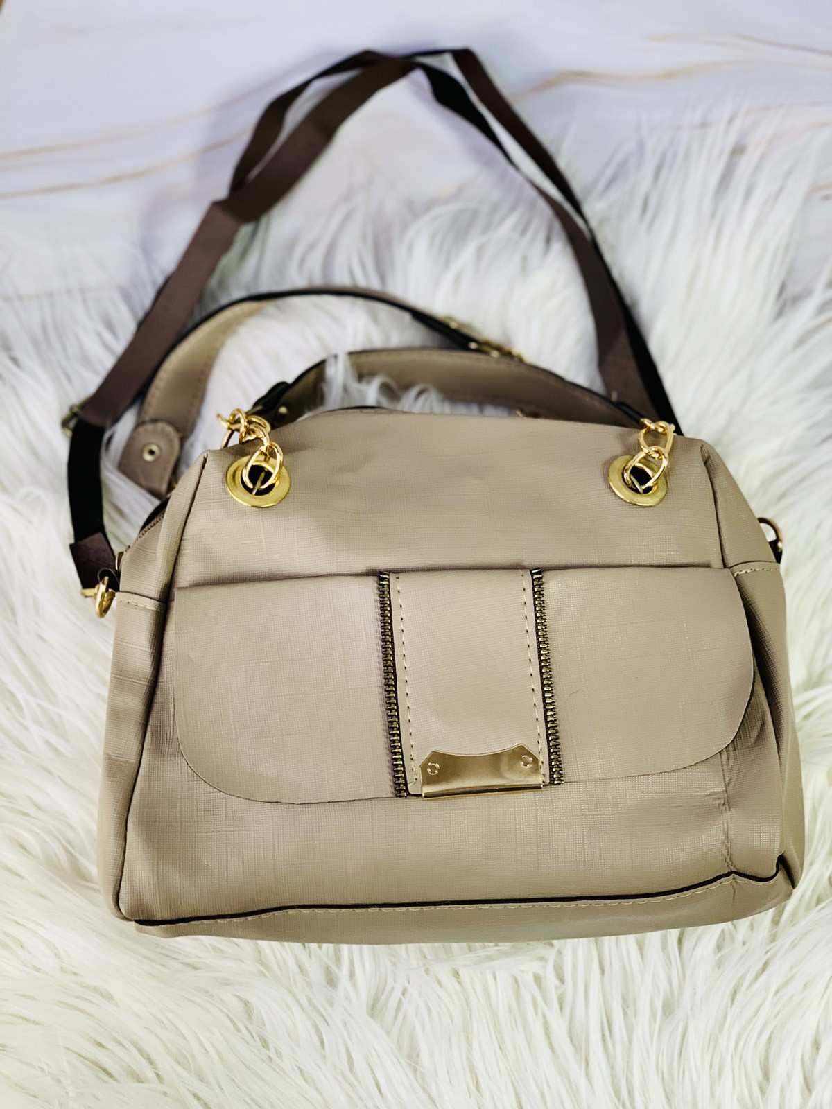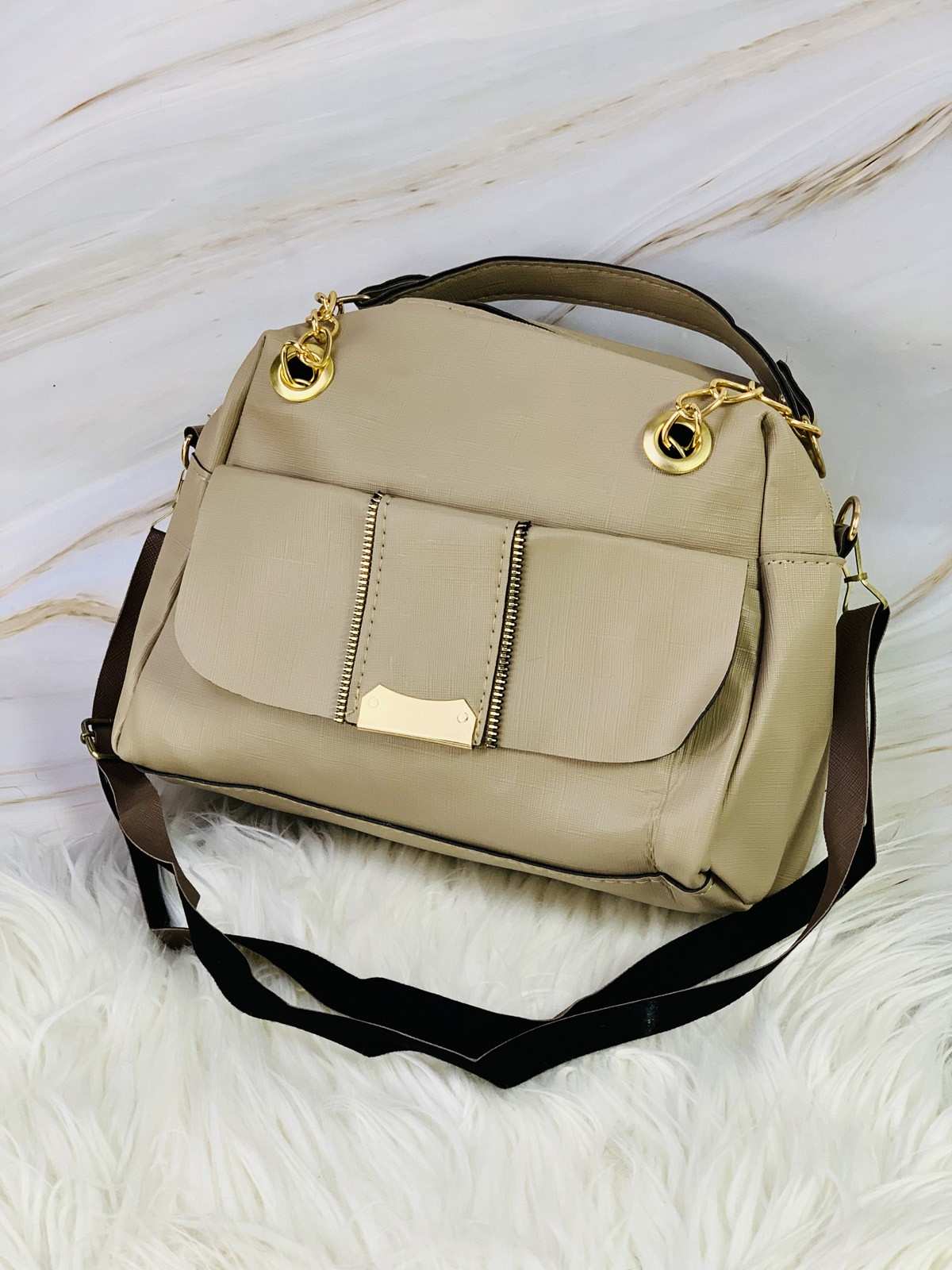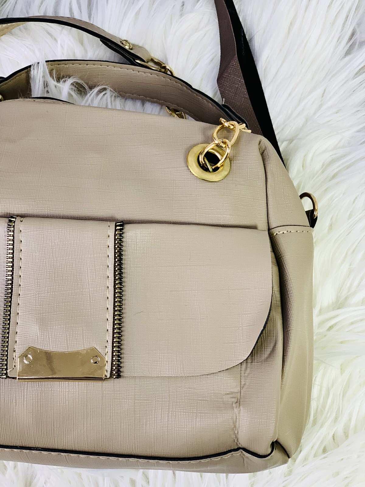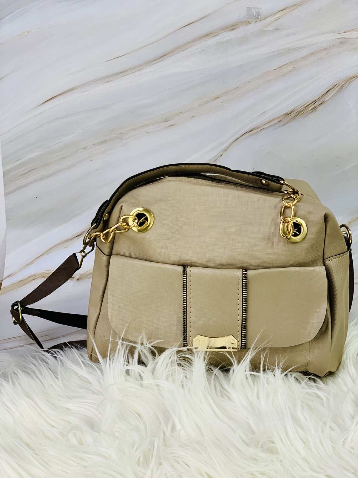 حقيبة باللون البيج الداكن مع سلسلة ذهبية