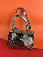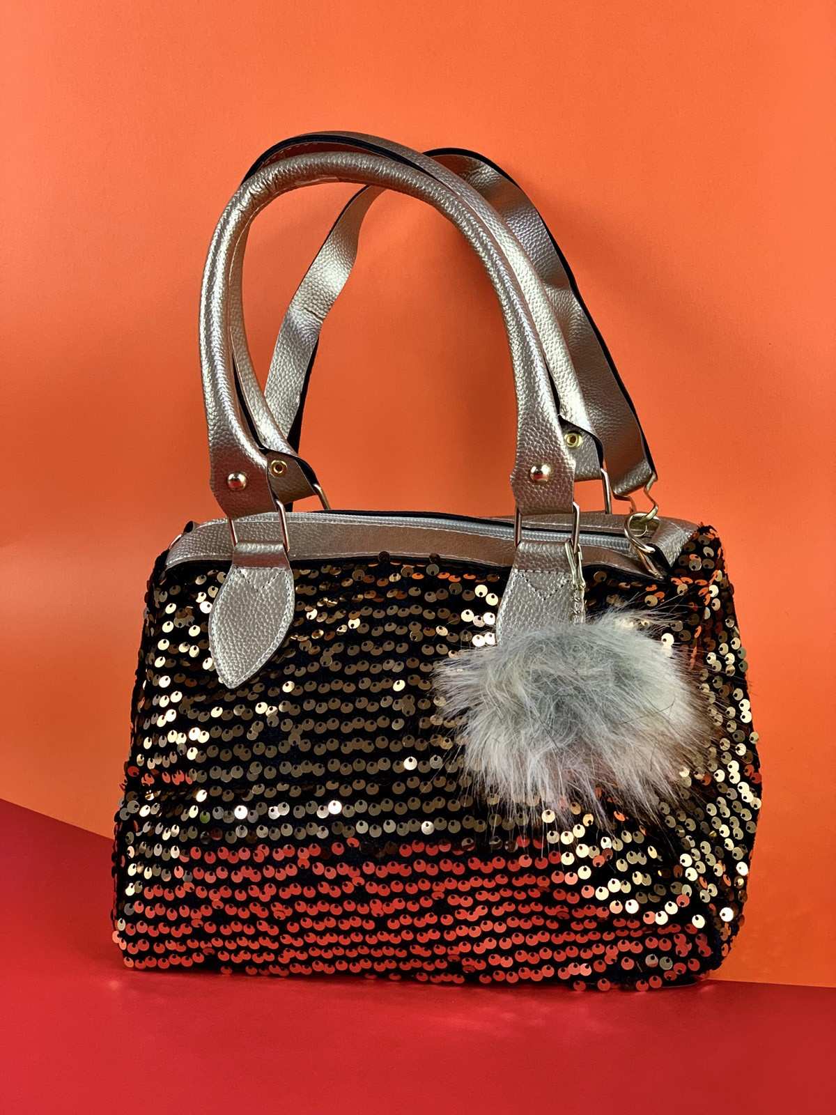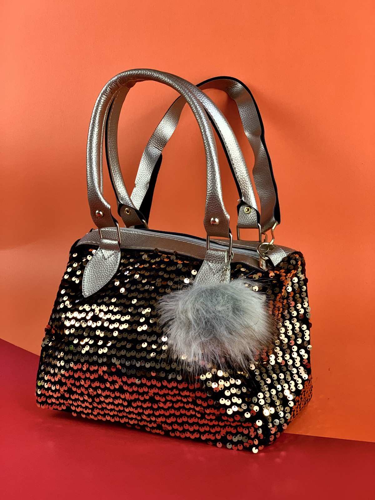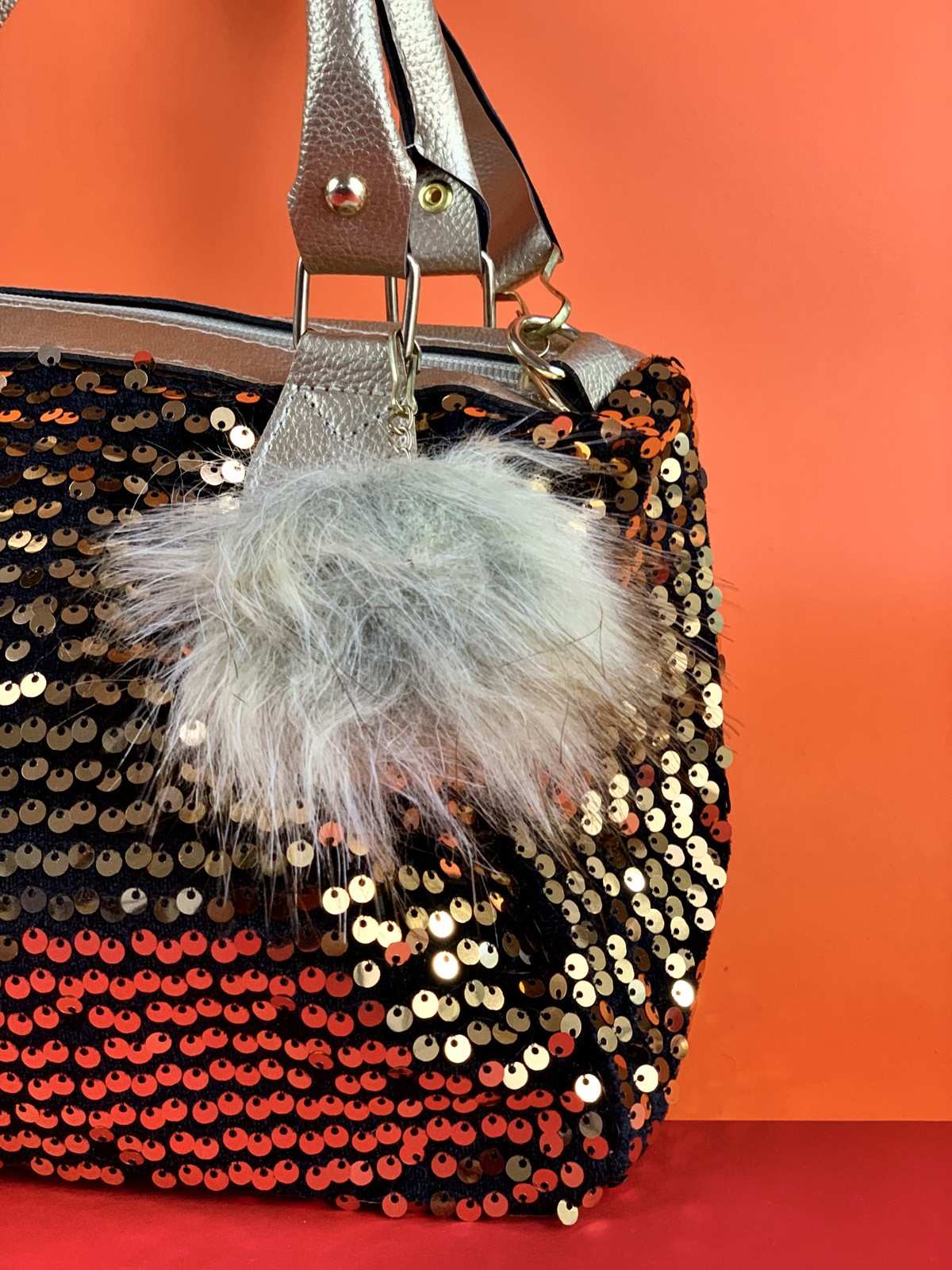 للنساء - حقيبة ذهبية ذات فراء وقطعة لامعة