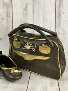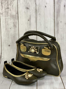 للنساء - حقيبة وحذاء باللون الأخضر مع زهرة مزخرفة
