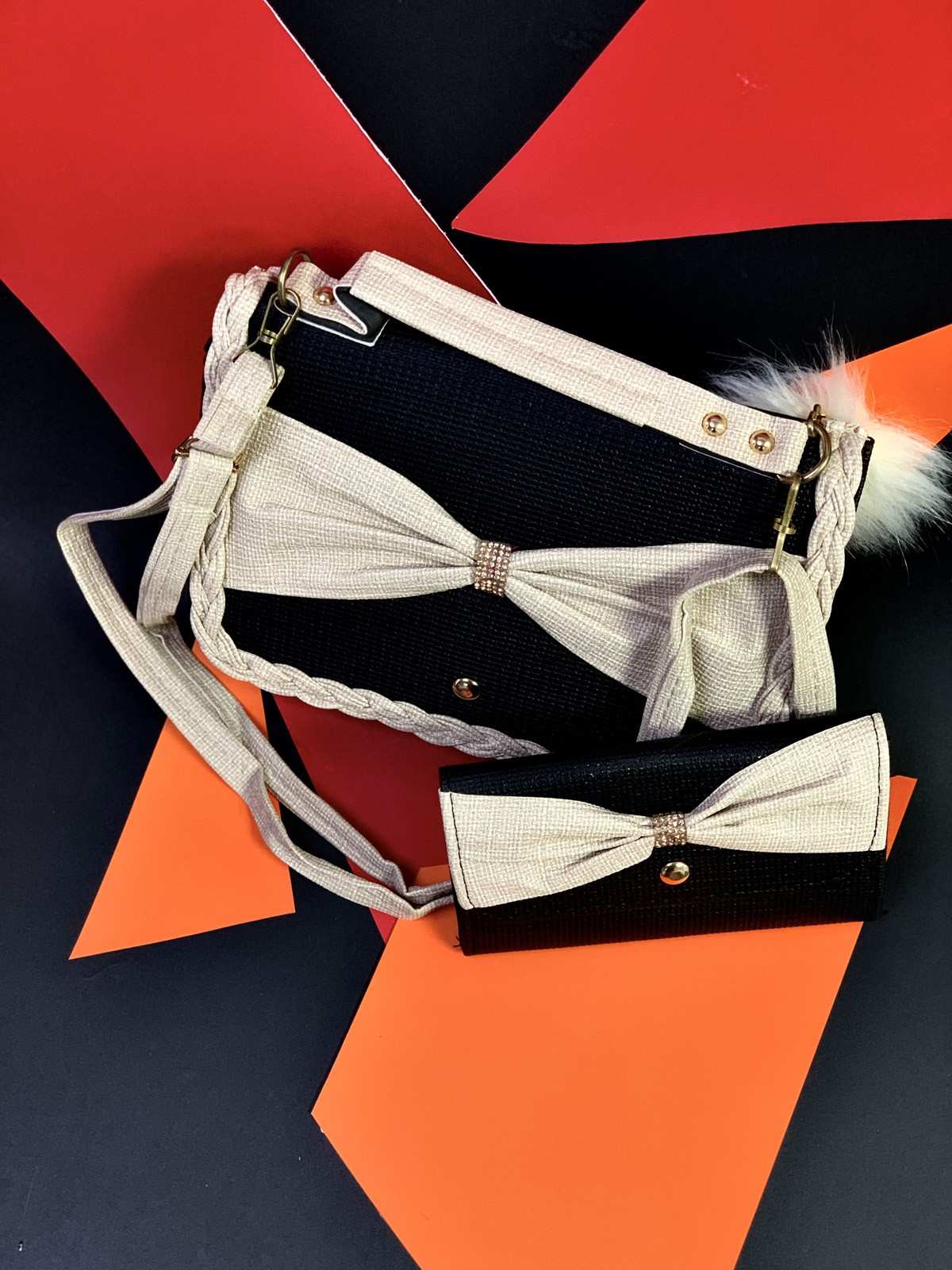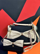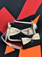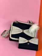 للنساء - حقيبة ومحفظة باللون الأزرق الداكن بشريط أبيض