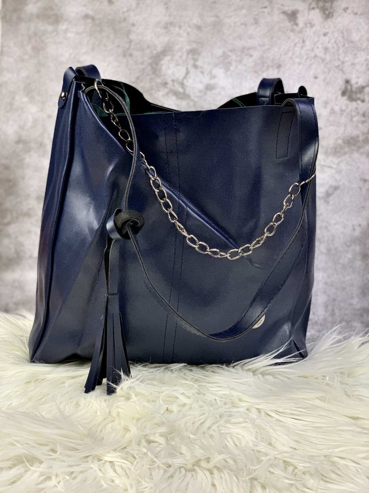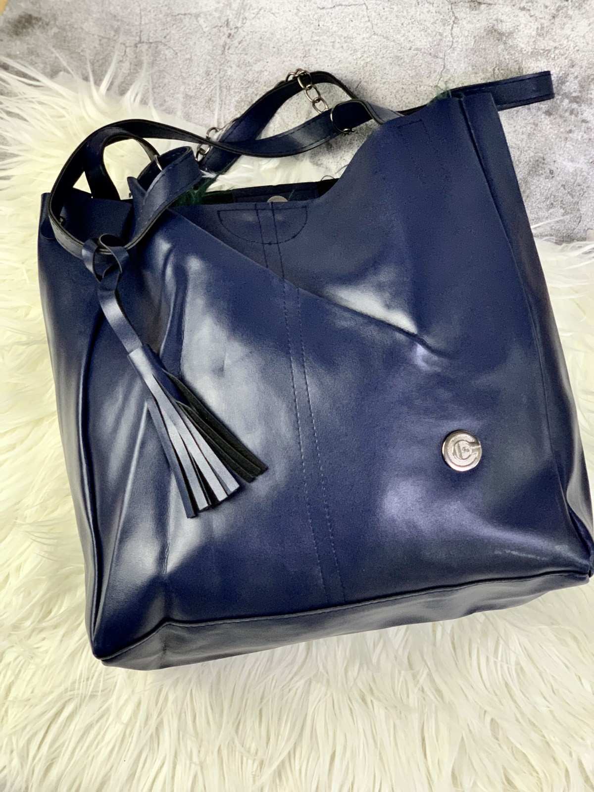 حقيبة باللون الكحلي مع أحزمة جلدية