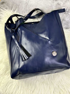للنساء - حقيبة باللون الكحلي مع أحزمة جلدية