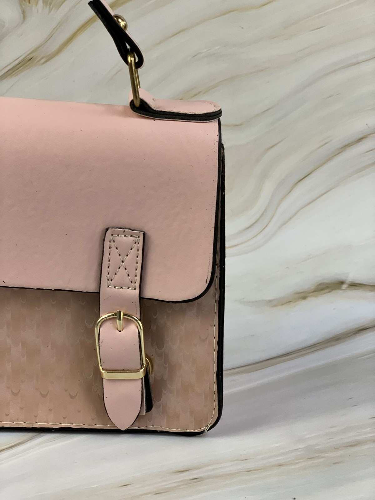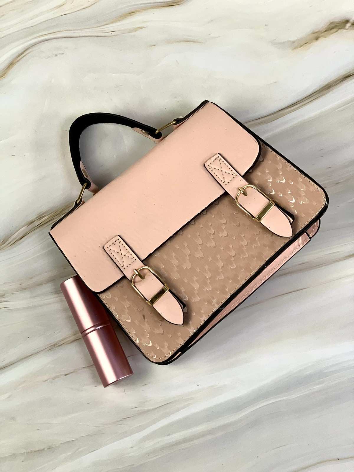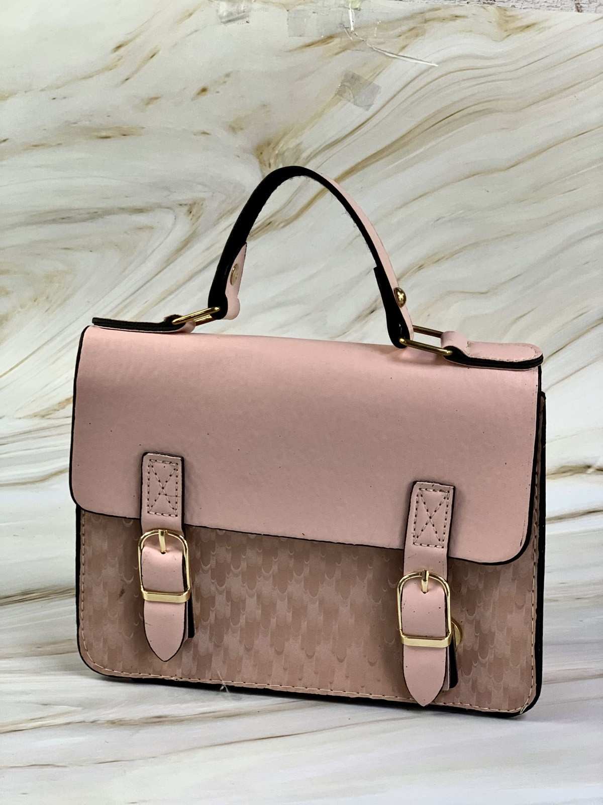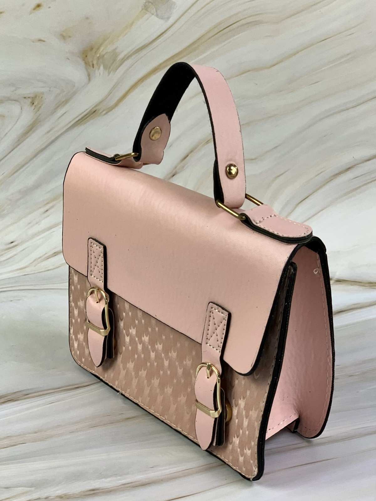 للنساء - حقيبة وردية مع حلقة معدنية مزخرفة