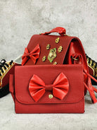 للنساء - حقيبة حمراء وحذاء ومحفظة بعقدة زخرفية