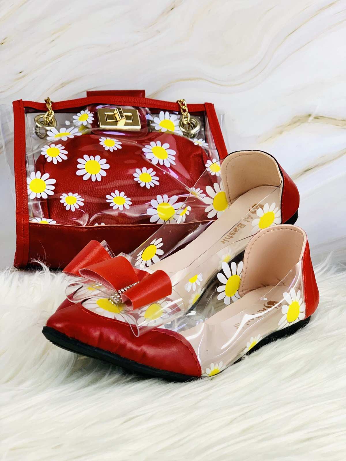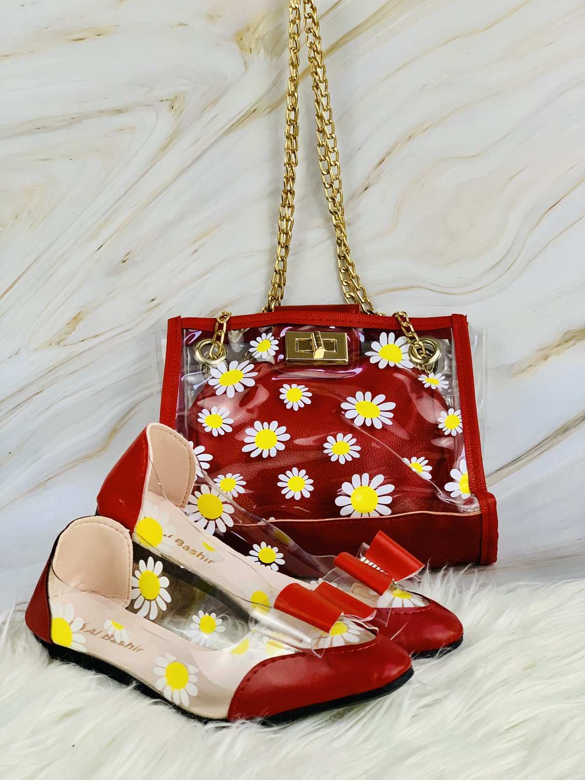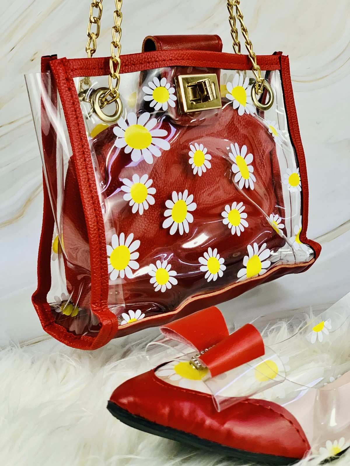 حقيبة وحذاء شفاف بطبعات عباد الشمس
