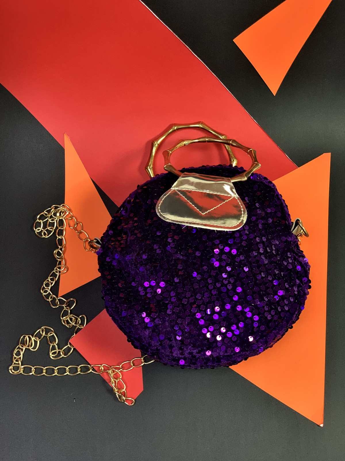 للنساء - حقيبة بنفسجية مع قطعة لامعة