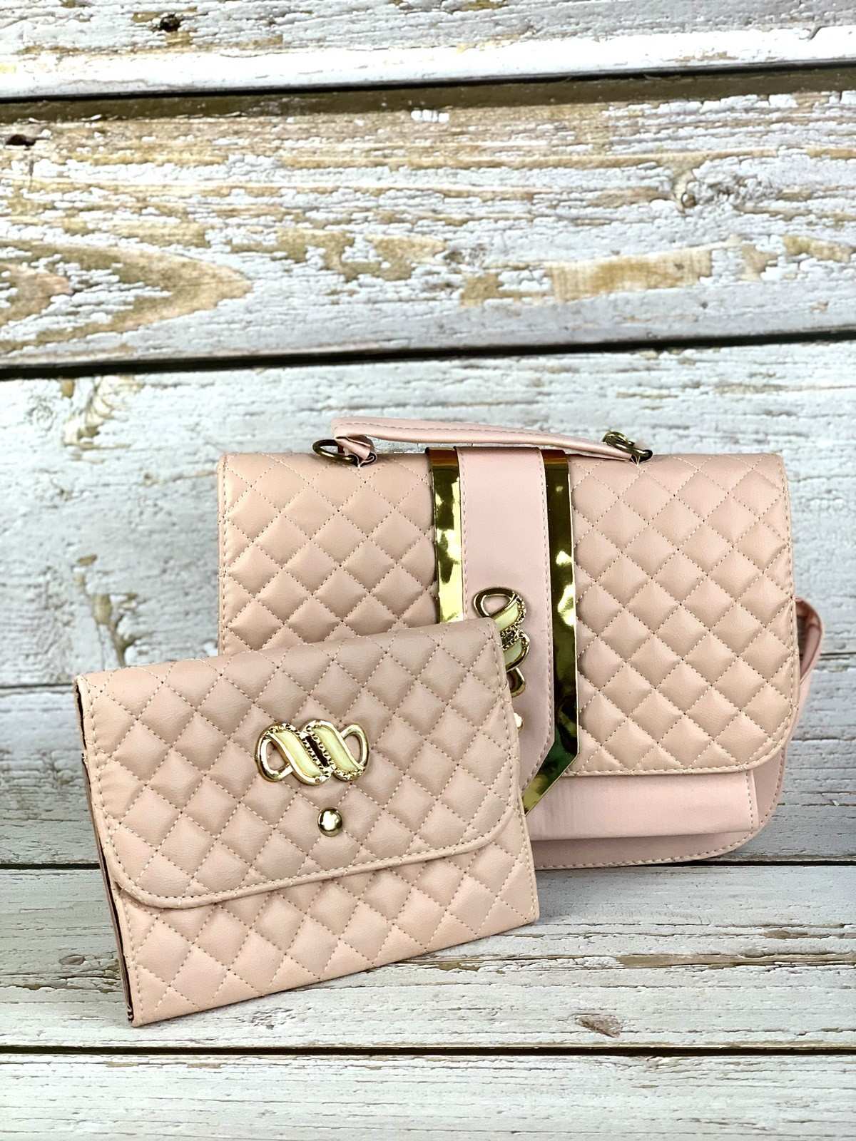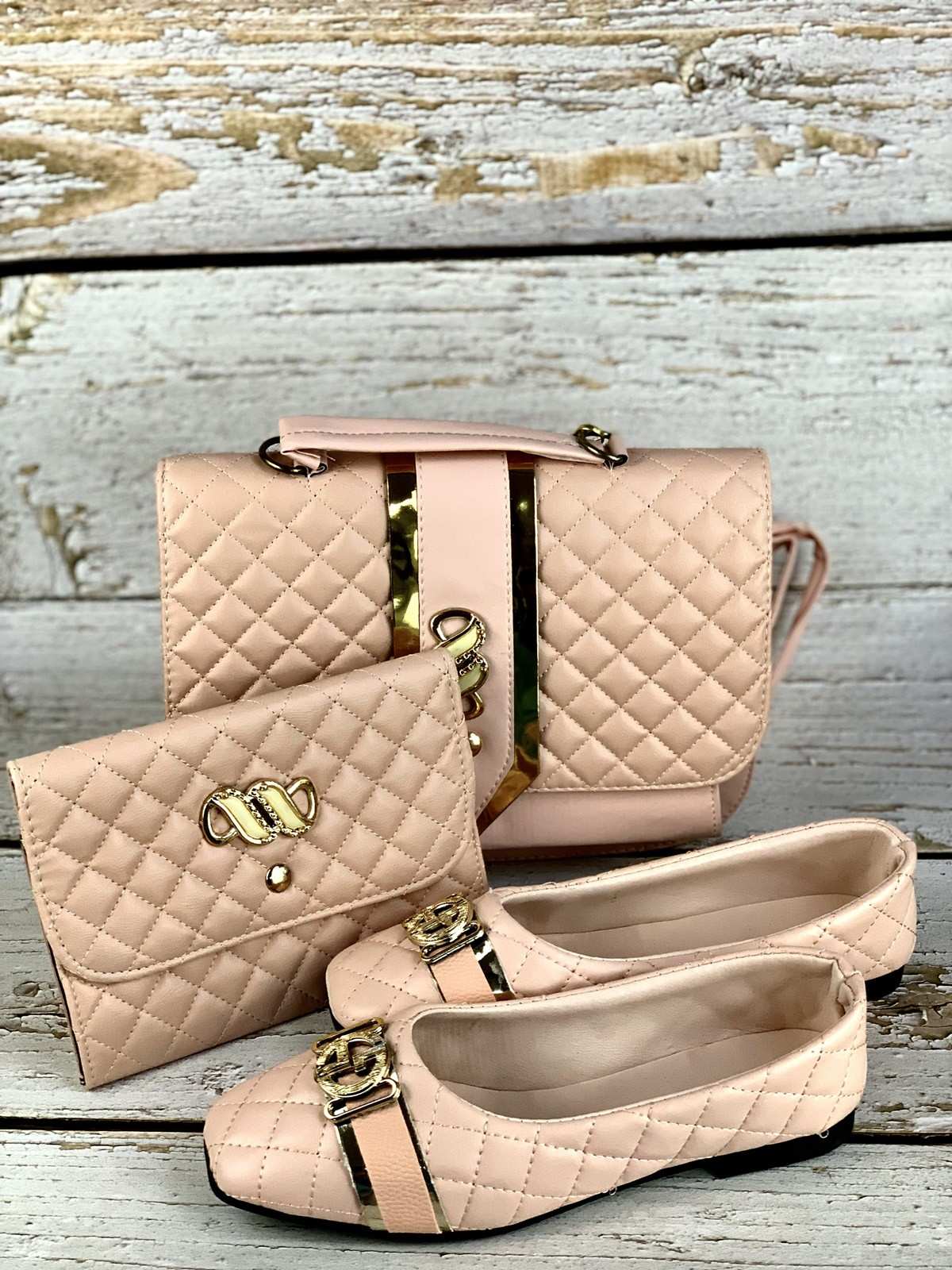 حقيبة وحذاء ومحفظة عسلي مختومة